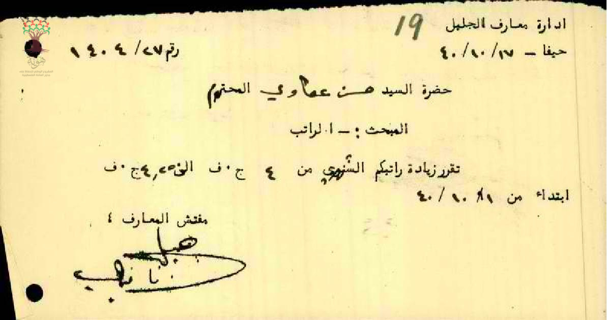 تقرير زسادة راتب المعلم حسن عكاوي
