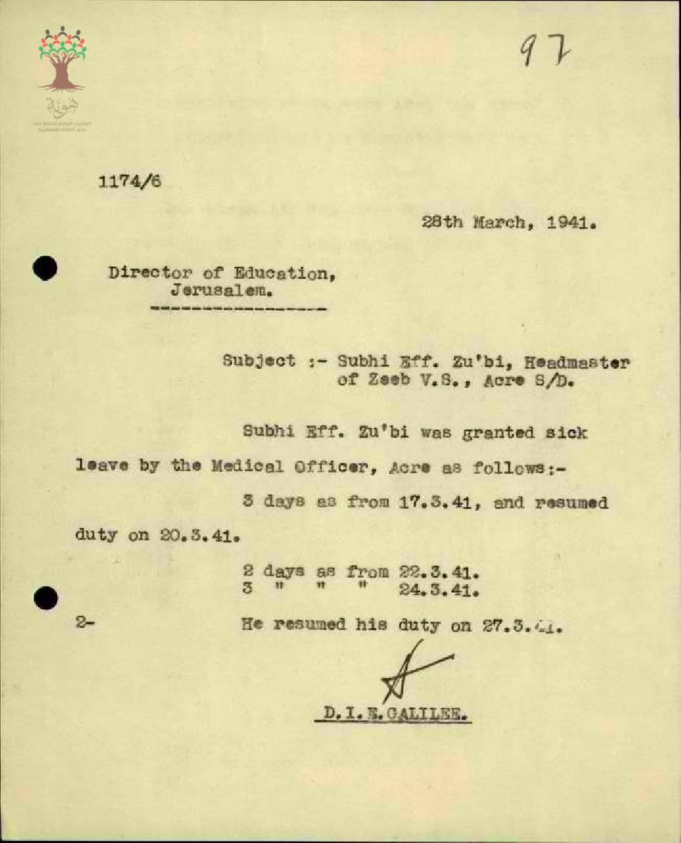 مجموعة رسائل وتقارير طبية عن غياب المعلم صبحي علي الزعبي