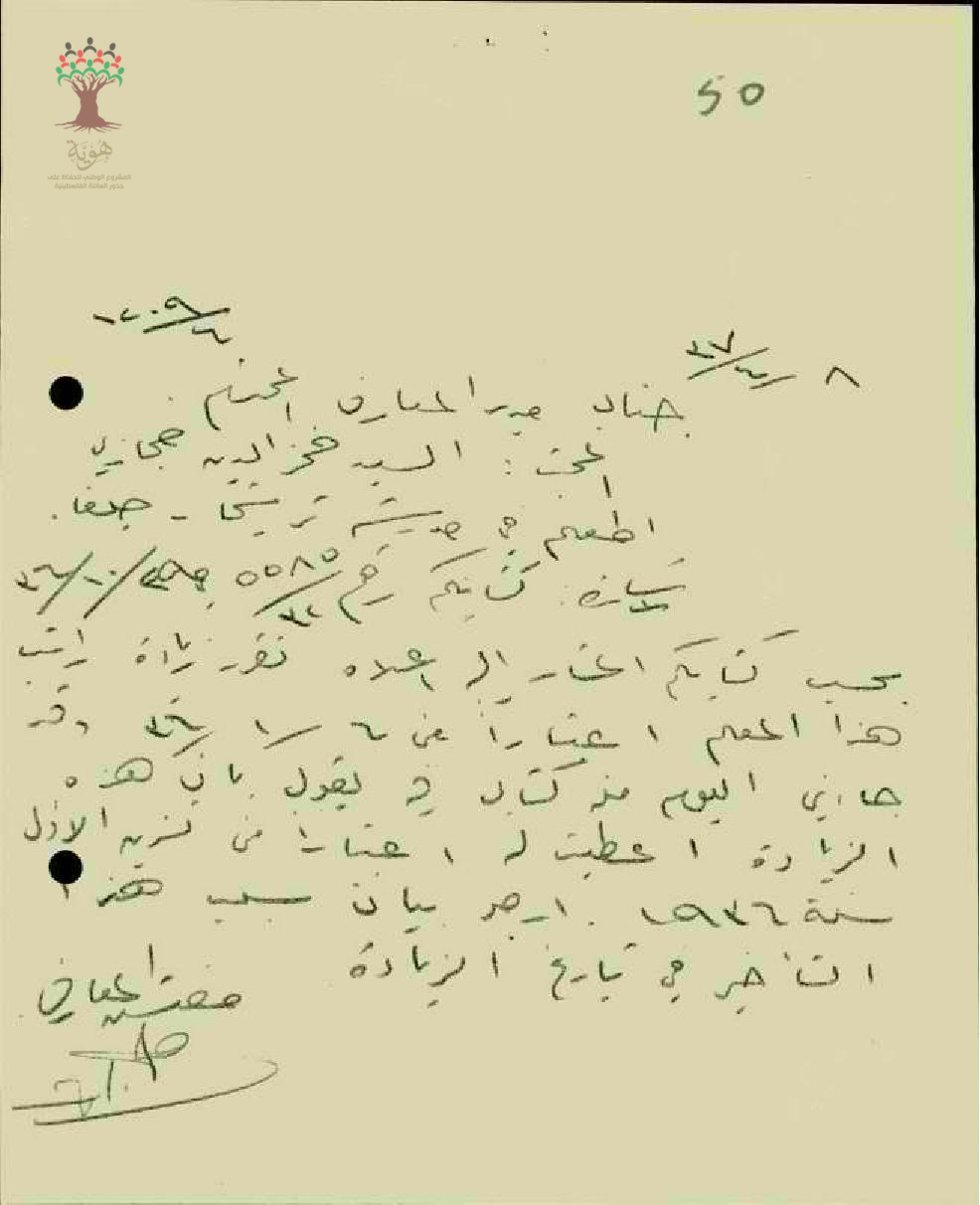 رسالة من مفتش المعارف الى جناب مدير المعارف المحترم بخصوص زيادة راتب المعلم فخري حجازي