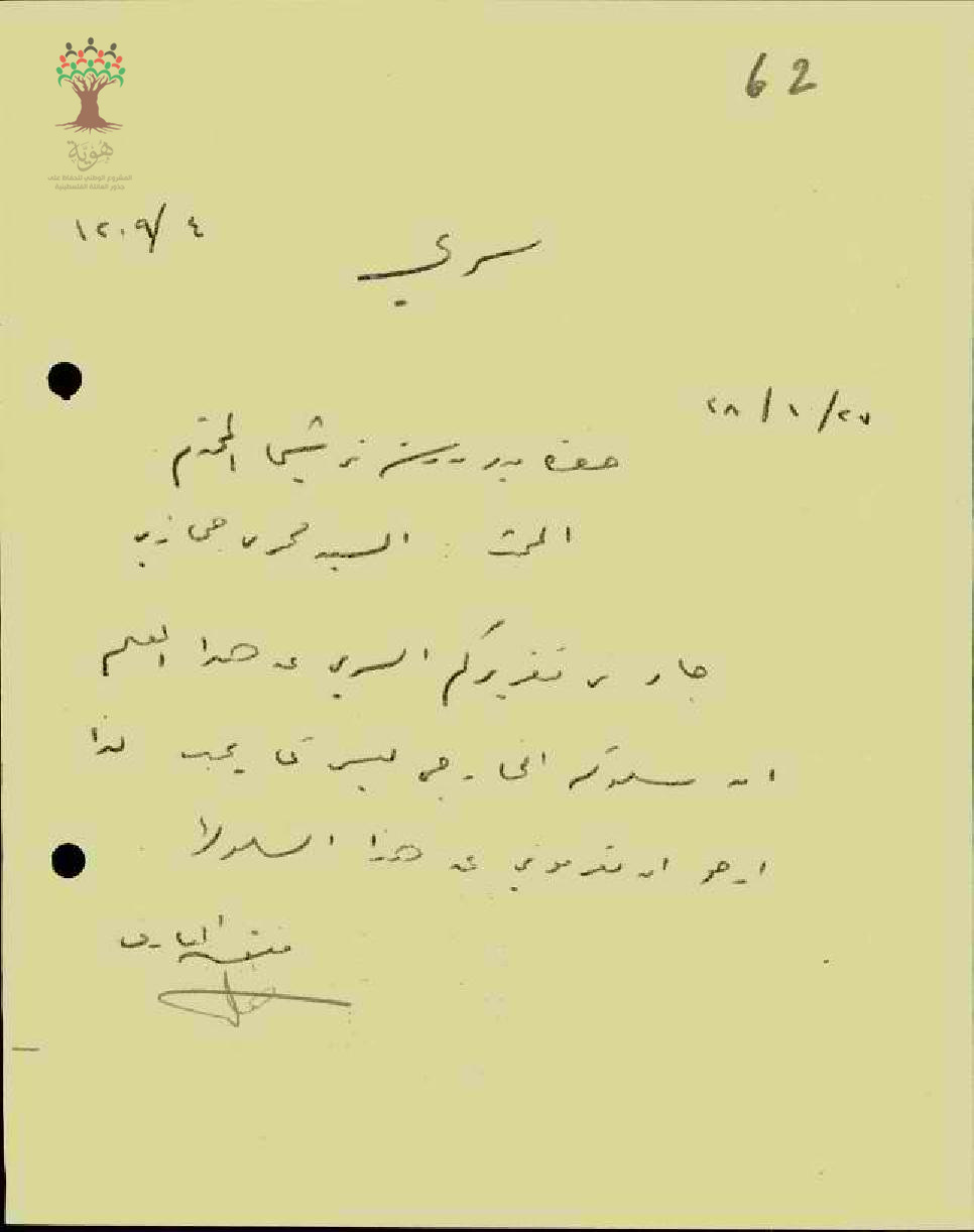 سالة سرية من مفتش المعارف إلى مدير مدرسة ترشيحا تذكير حضرتكم بخصوص هذا المعلم فخري حجازي الغير مرضي عنه سلوكه
