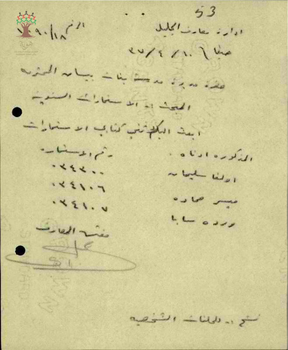 رسالة من مفتش المعارف الى مديرة مدرسة بنات بيسان بخصوص الاستمارة السنوي الى المعلمة وردة سابا