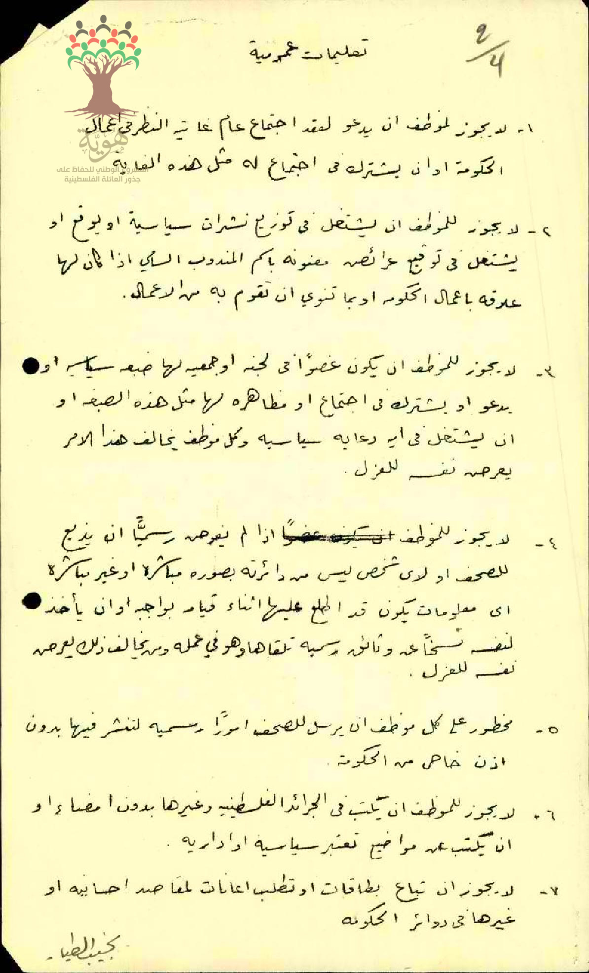 توقيع المعلم نجيب الطيار على التعليمات العمومية لإدارة المعارف