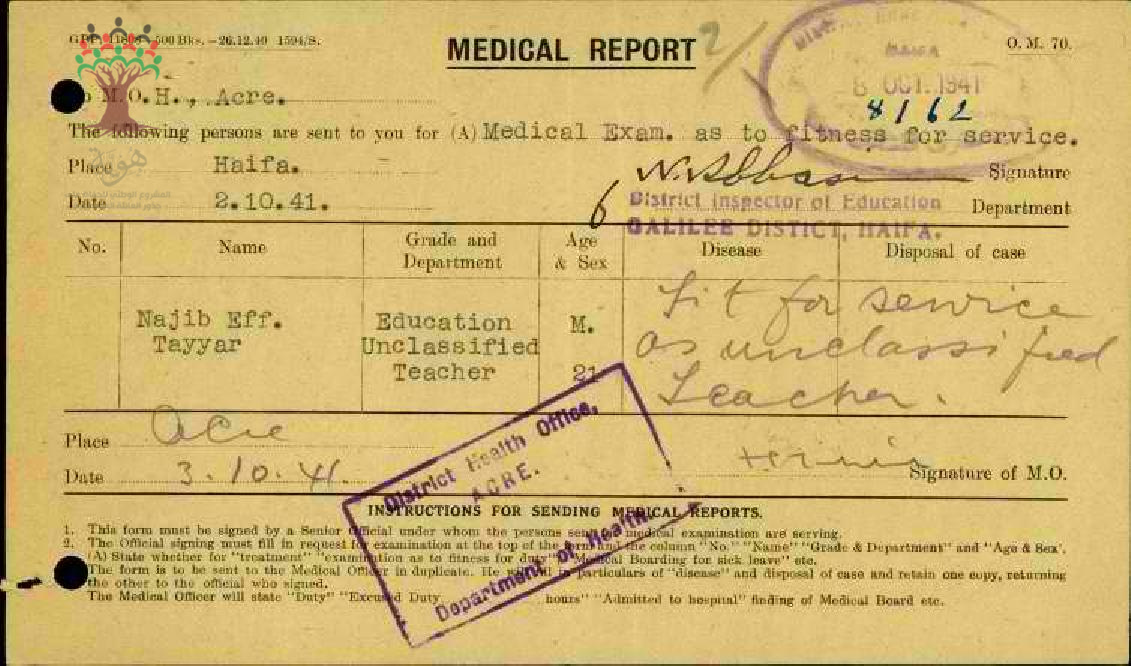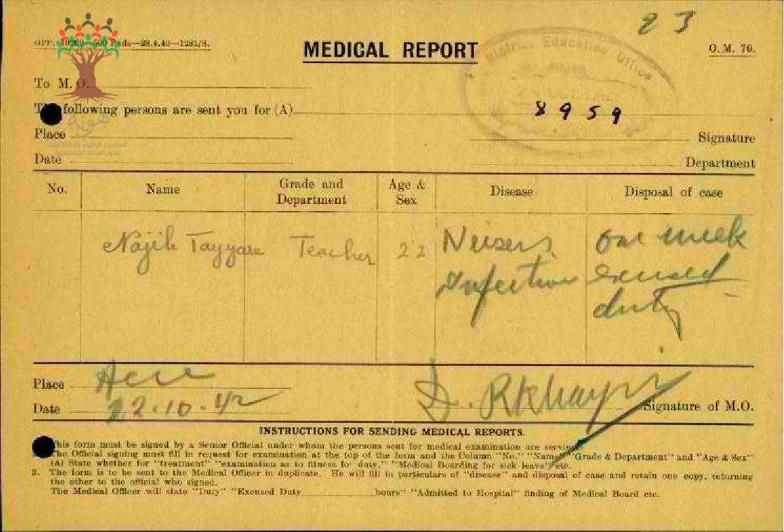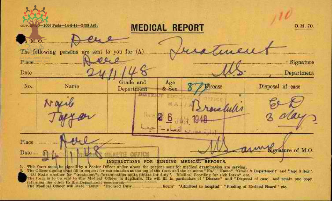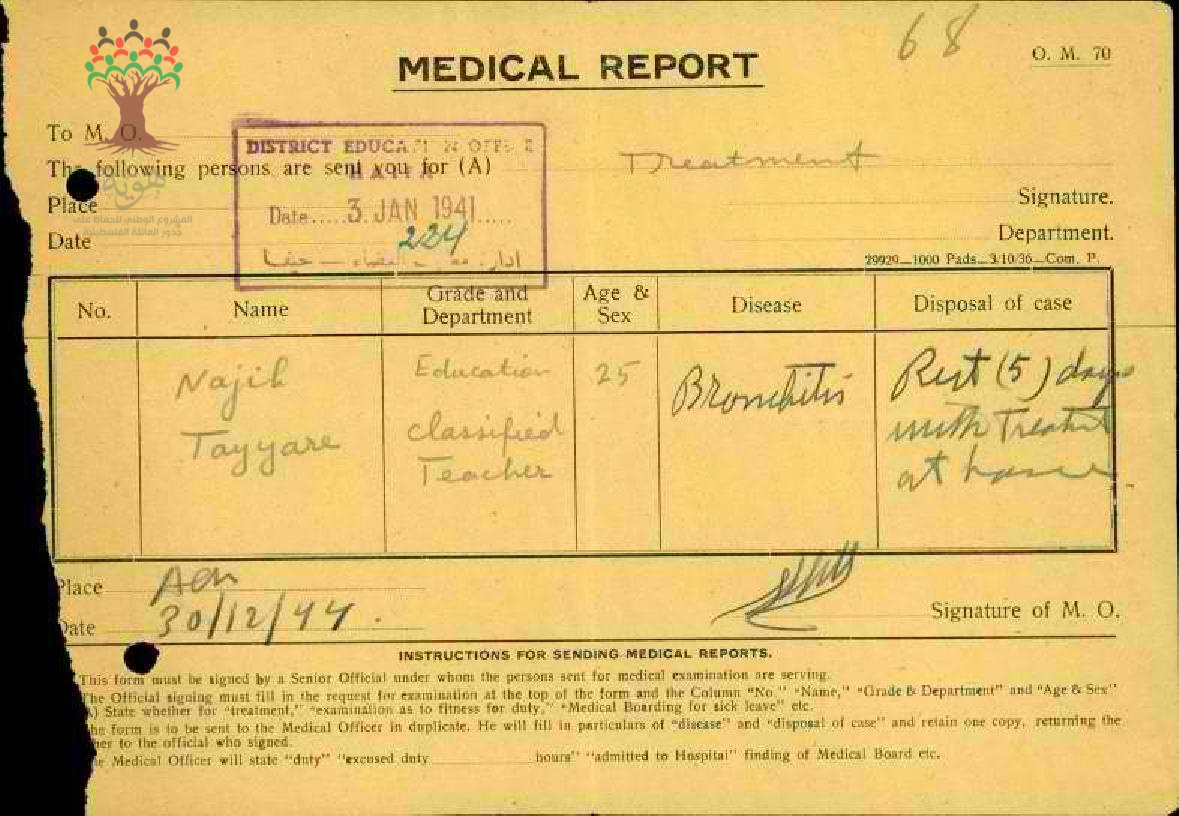 تقارير طبية للمعلم نجيب الطيار - شعب - مدرسة الدموان