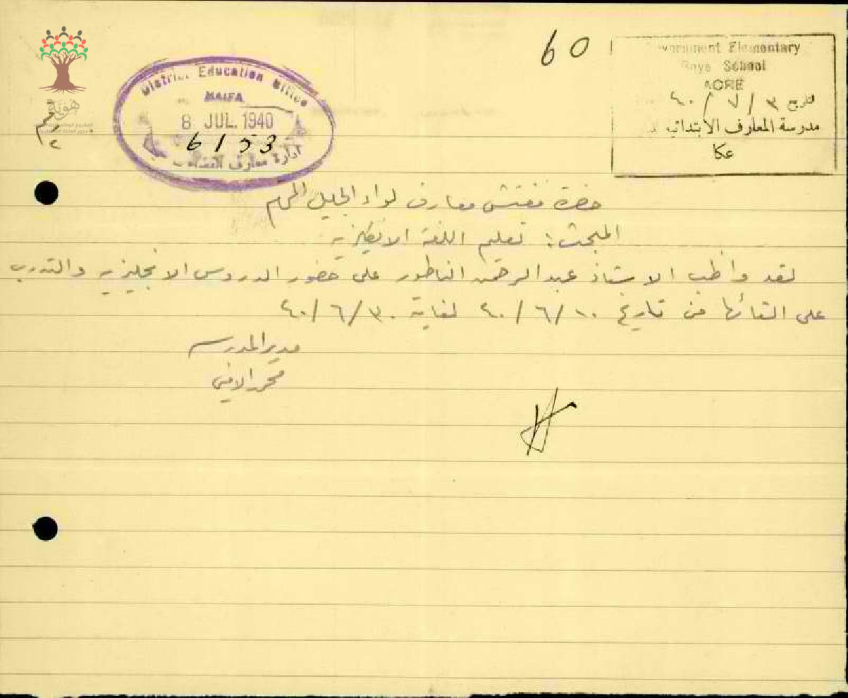 تقرير عن مواظبة المعلم عبد الرحمن فرج الناطور لدورس اللغة الانجليزية