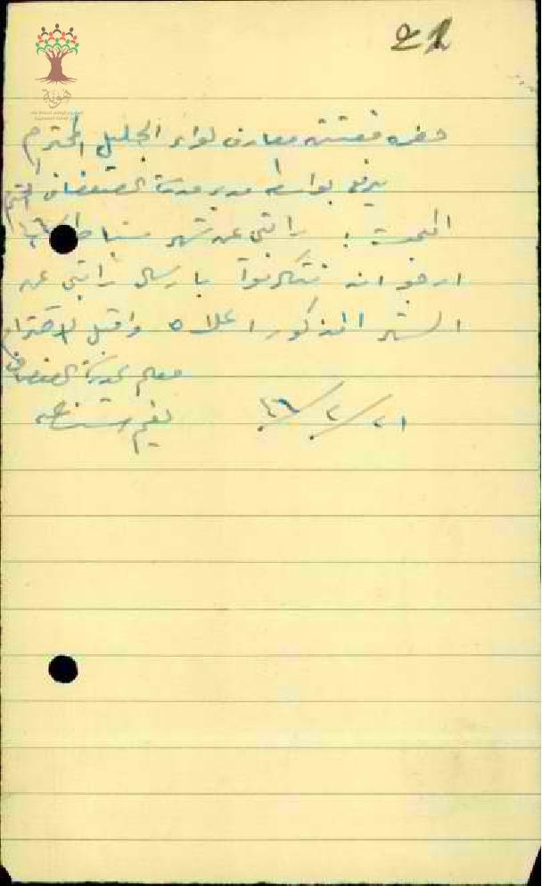 رسالة من المعلم نعيم يوسف شناعة الى مفتش معارف الجليل ارجو ان تتكرموا بارسل راتبي عن شهر شباط
