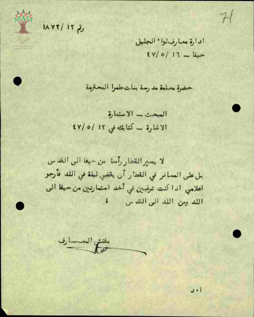 رسالة بخصوص وجهة القطار مقدمة للمعلمة رابعة عبد الحميد طه