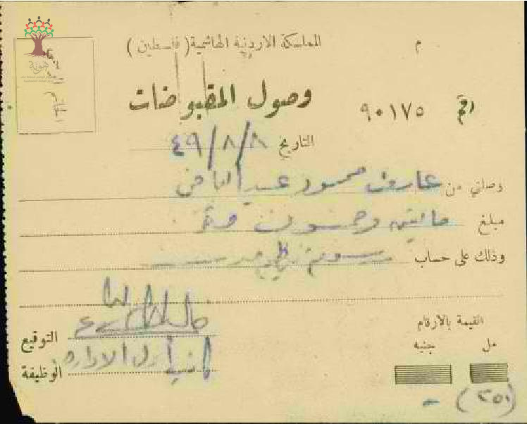 ايصال دفع 250 مل بإسم عارف محمود عبد الباقي رسم تنظيم المدن