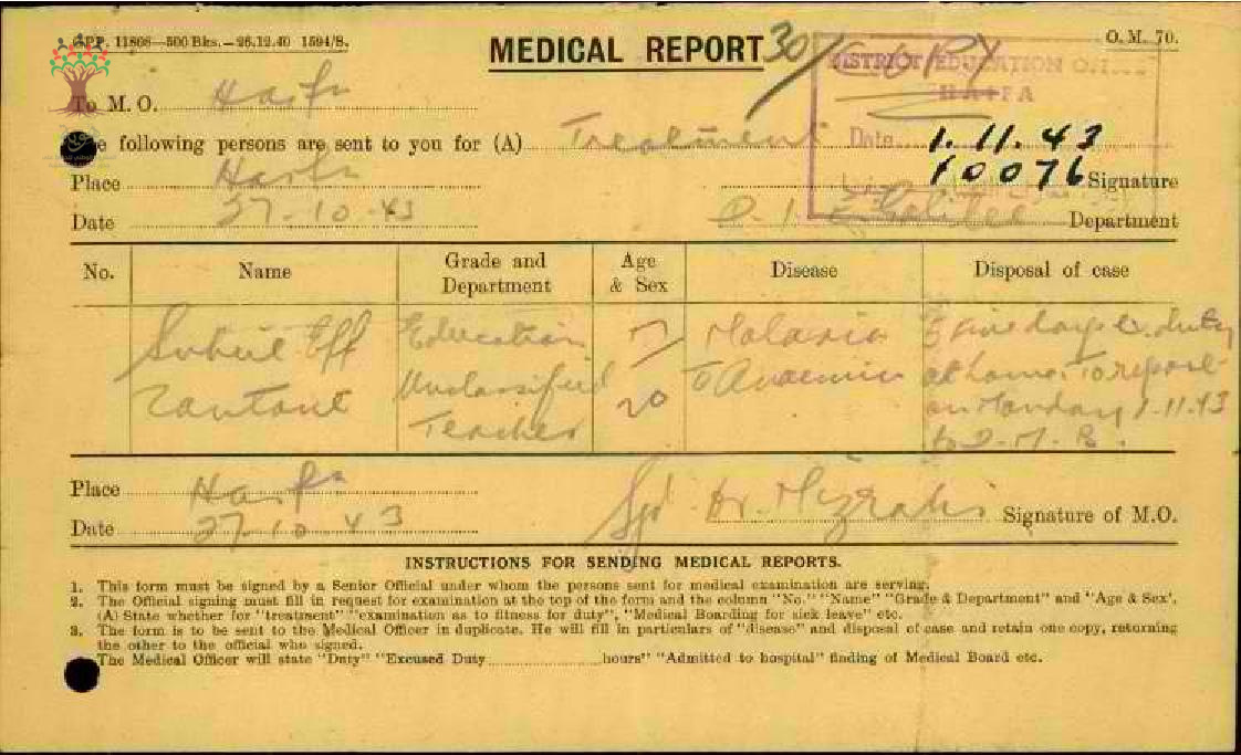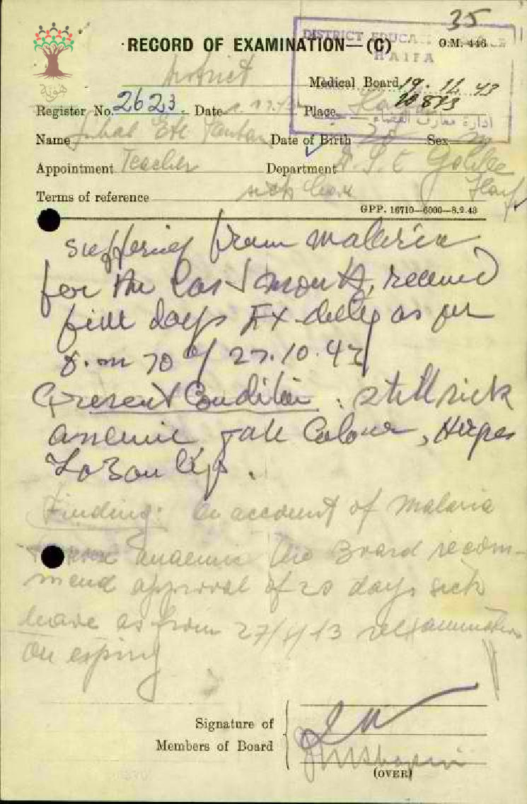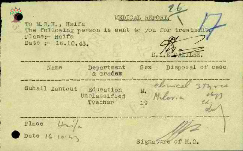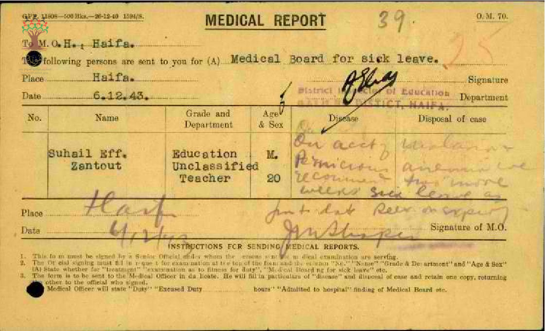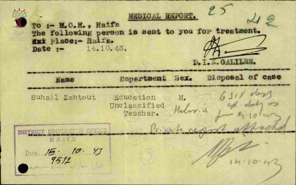 تقرير طبي عند غياب المعلم سهيل زنتوت عن المدرسة