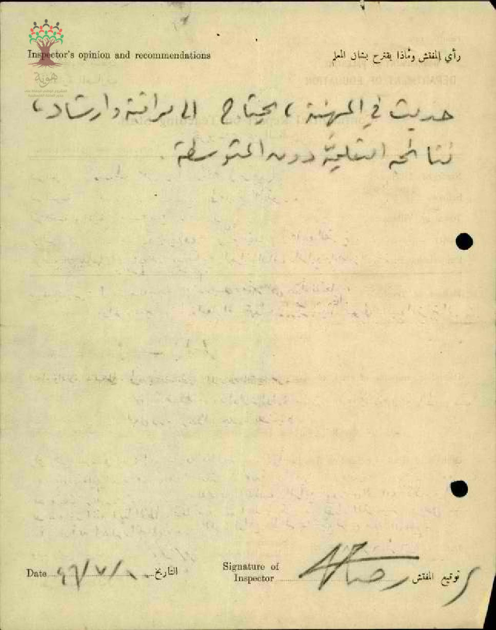 راي المفتش وماذا يقترح بشان المعلم مصطفى عرابي