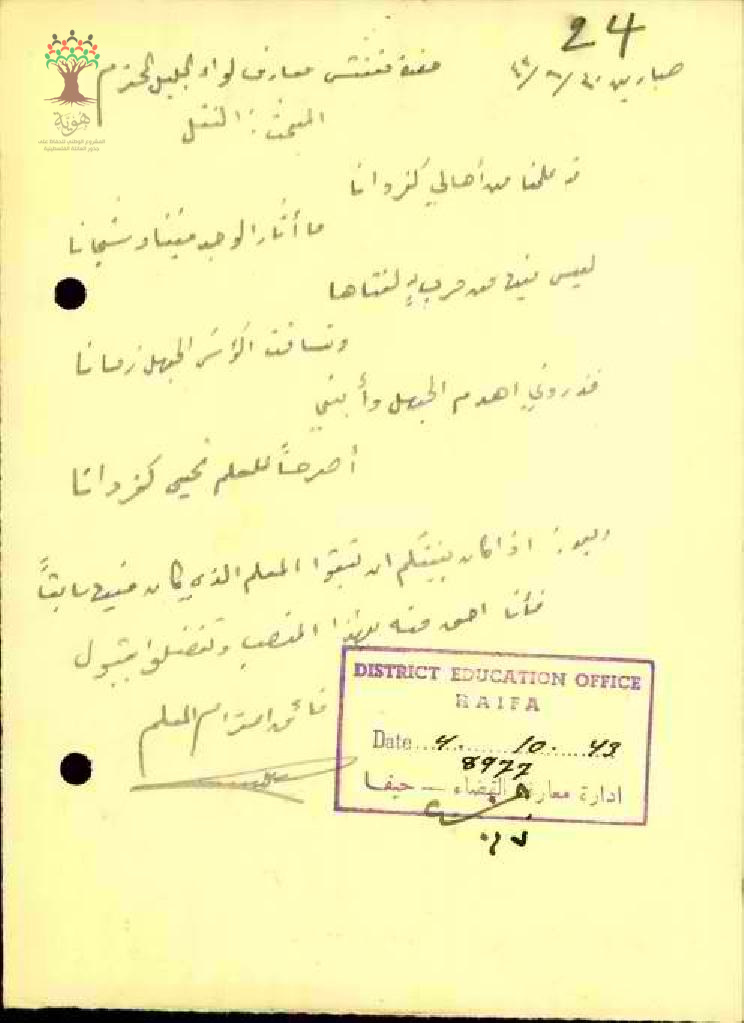 رسالة حول نقل المعلم سهيل زنتوت من مدرسة الدامون