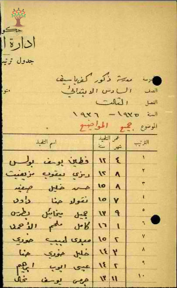 جدول ترتيب طلاب الصف السادس ابتدائي خلال الفصل الثالث