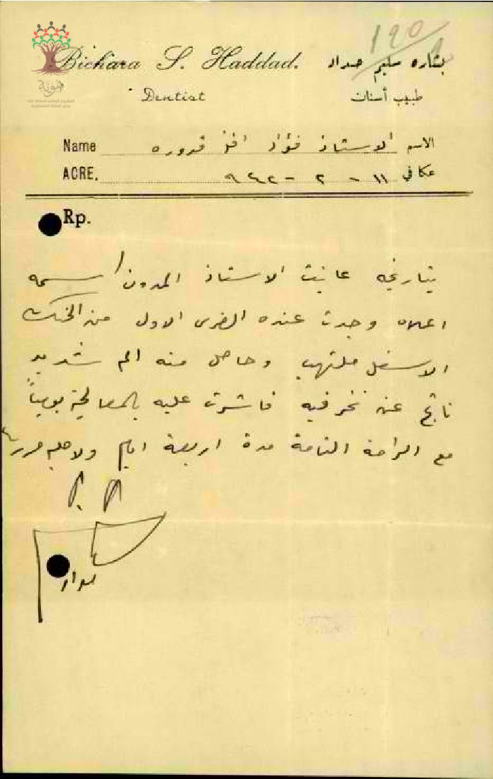 تقرير طبي من المعلم فؤاد قدورة الى مفتش المعارف