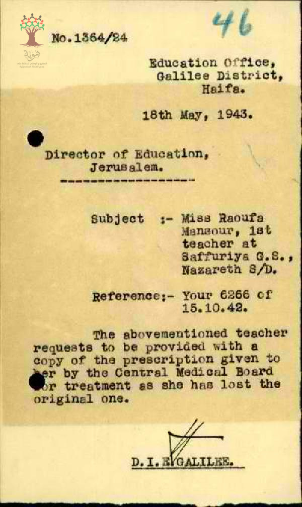 رسائل بخصوص ورقة الفحص الطبي للمعلمة رؤوفة منصور للحصول على اسم الدواء الموصوف للمعلمة المذكورة