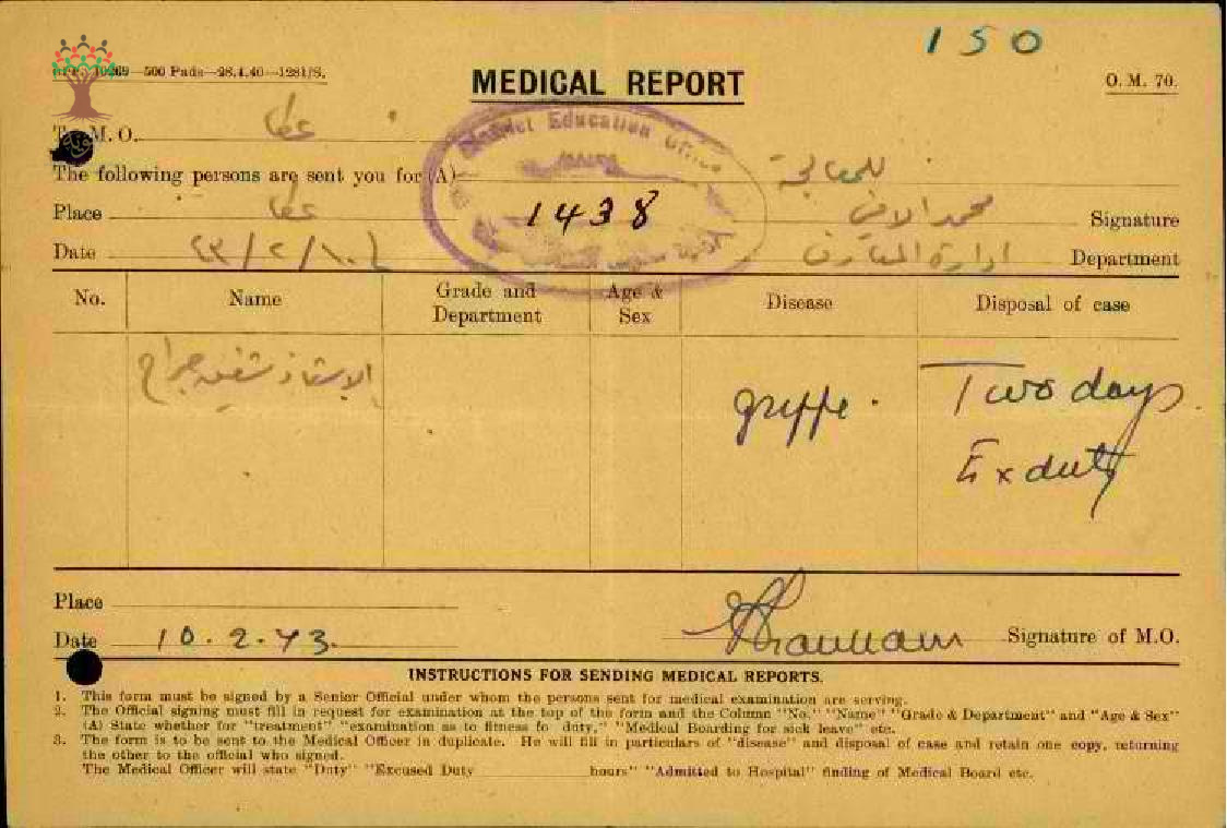 تقرير طبي عن غياب المعلم شفيق جراح-مدرسة المكر