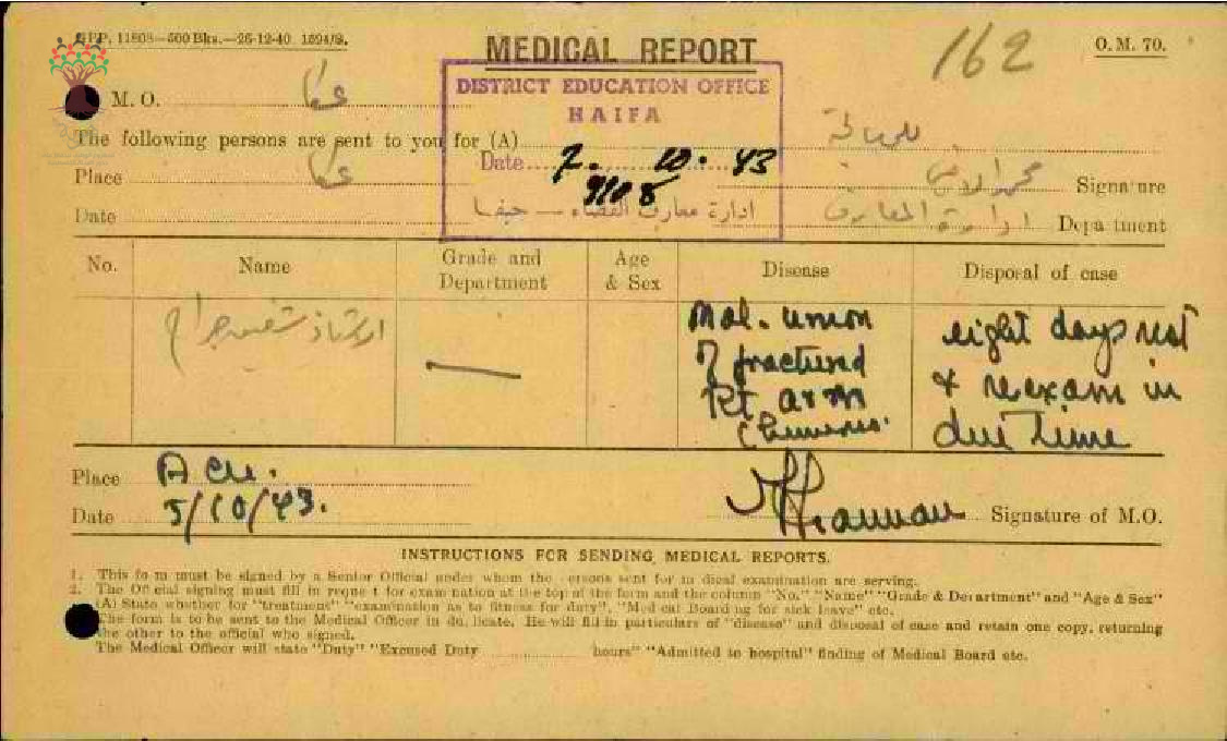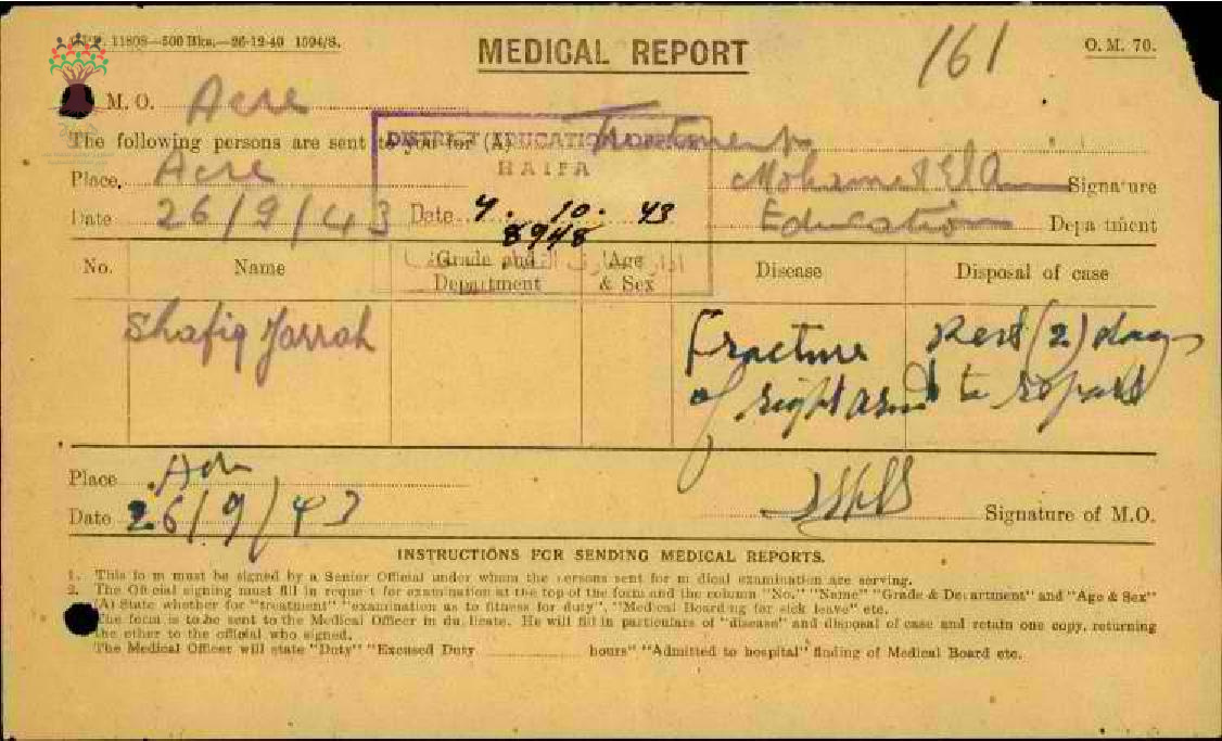 تقارير طبية عن غياب المعلم شفيق جراح مدرسة عكا الابتدائية-عكا