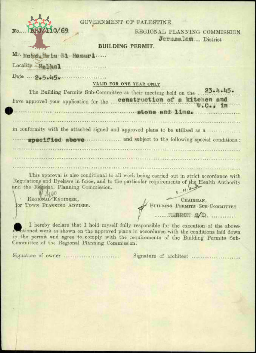 طلب رخصة بناء - محمد نعيم الحموري - حلحول
