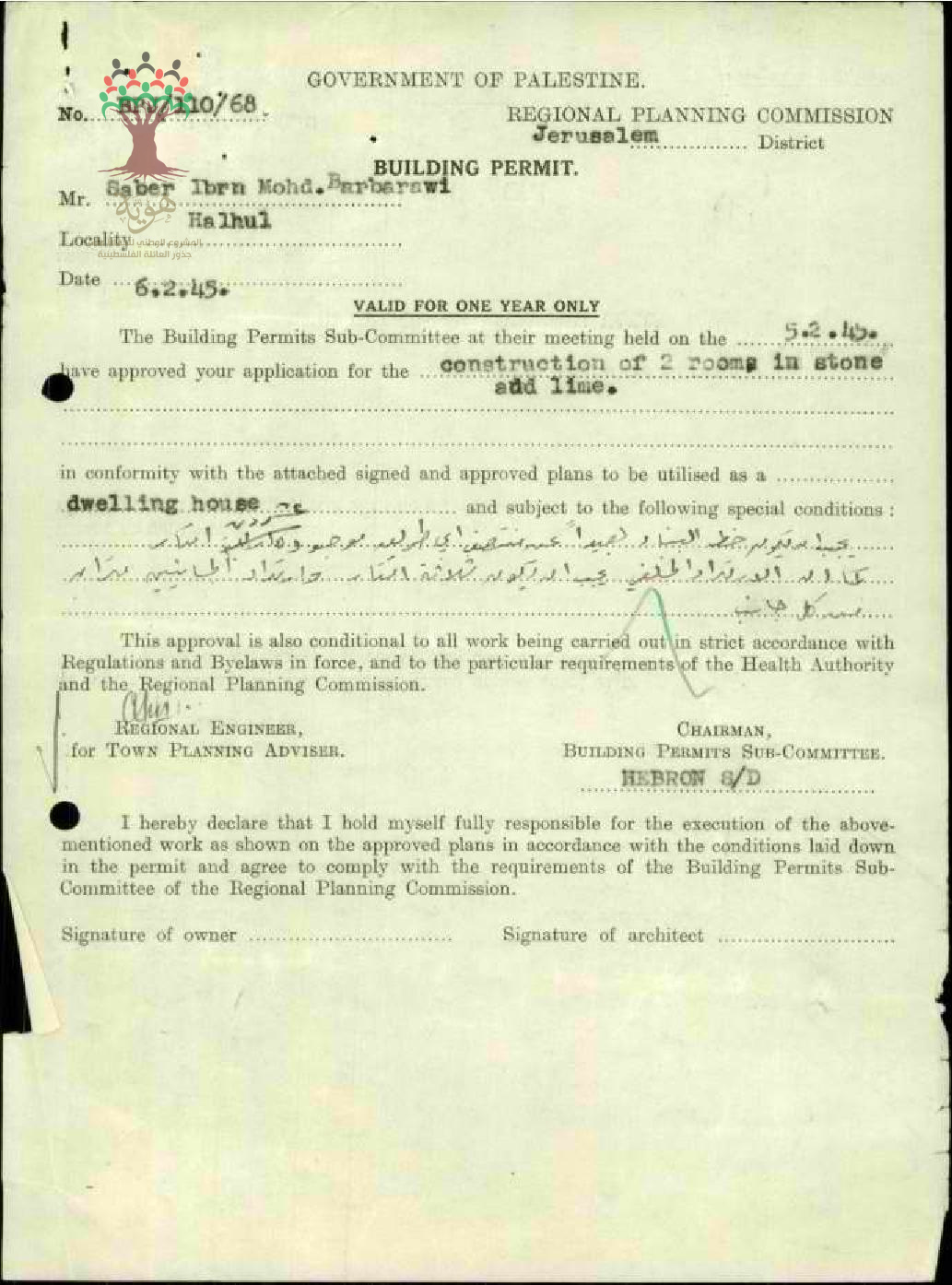 طلب رخصة بناء - صابر ابراهيم محمد بربراوي - حلحول