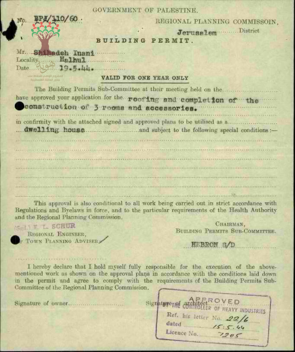 طلب رخصة بناء - شحادة العناني - حلحول
