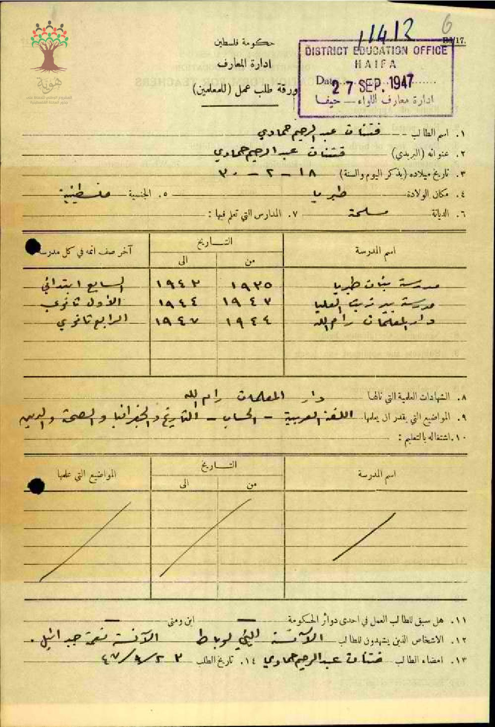 ورقة طلب عمل للمعلمة فتنات حمادي/سمخ