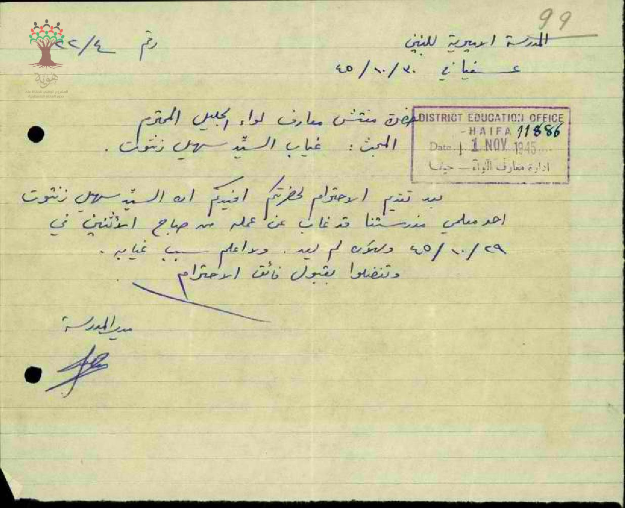 تقرير عن غياب المعلم سهيل زنتوت بسبب المرض
