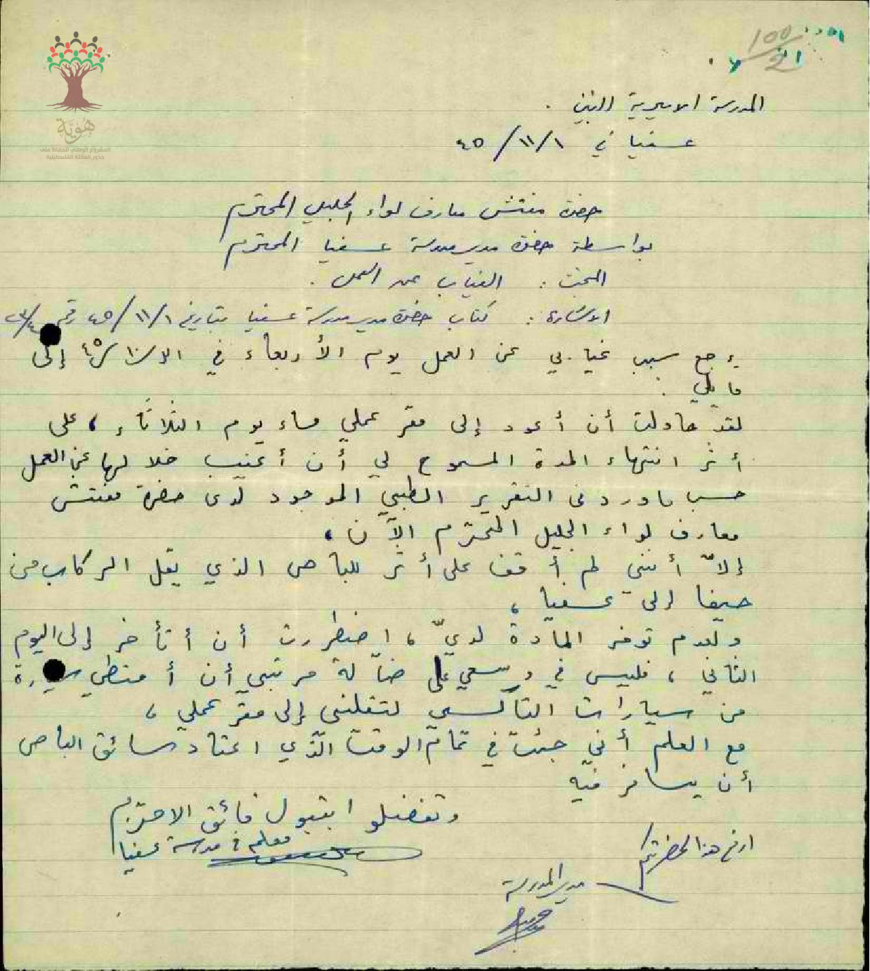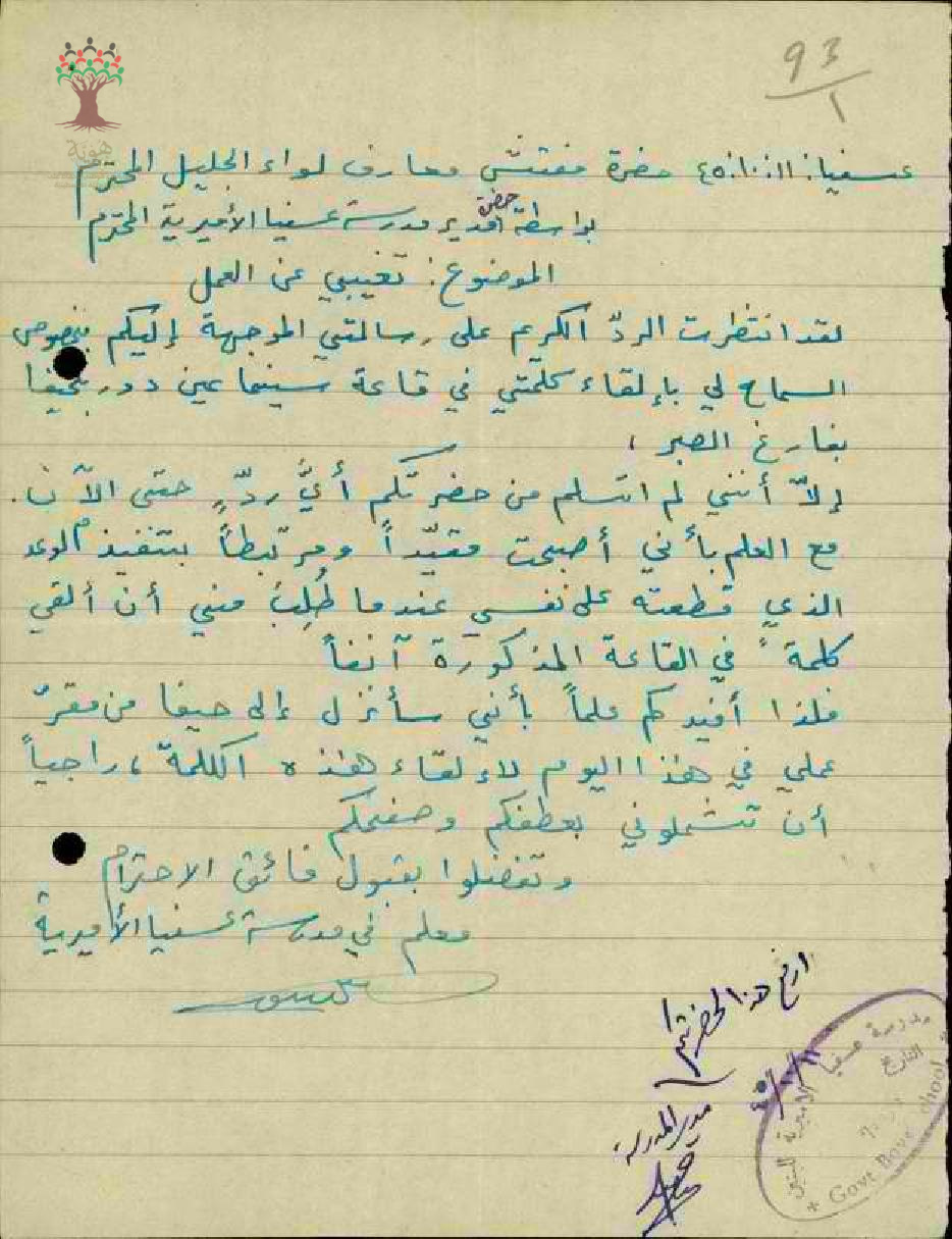تبرير المعلم سهيل زنتوت لغيابه عن المدرسة