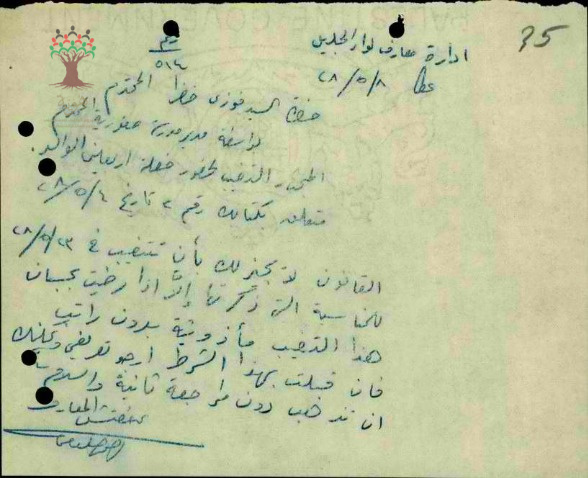 رسالة من مفتش المعارف الى المعلم فوزي الخضرا يرفض طلب اجازته