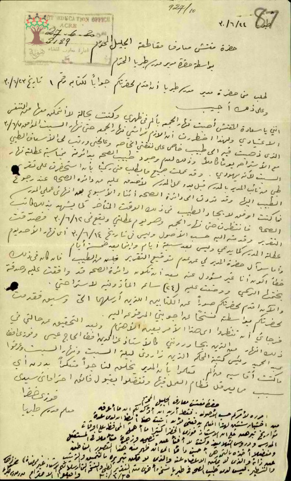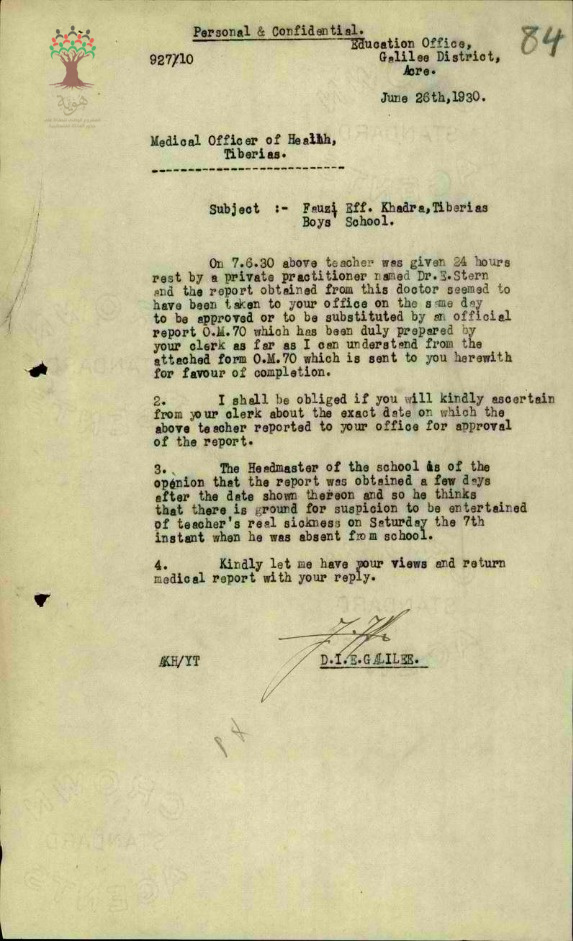 مجموعة رسائل بخصوص تغيب المعلم فوزي الخضرا بدون مبرر والتحقيق بشأن التقرير الطبي