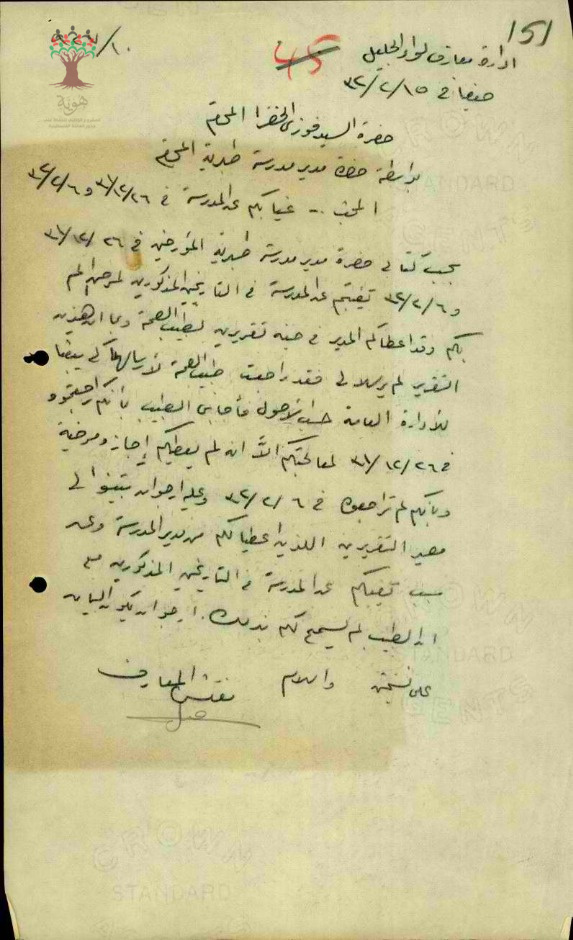 رسالة من مفتش المعارف الى المعلم فوزي الخضرا بخصوص تغيبه عن العمل
