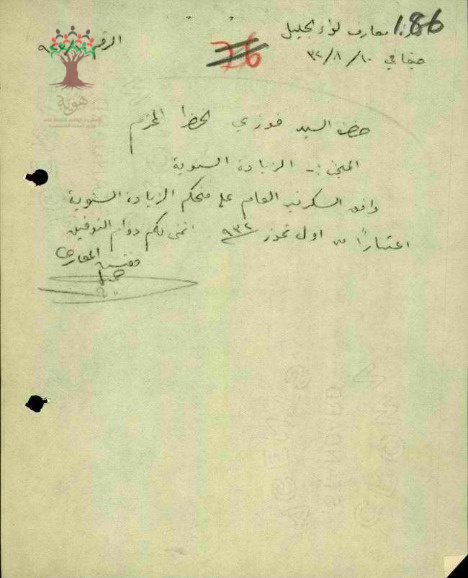رسالة من مفتش المعارف الى المعلم فوزي الخضرا بخصوص زيادة راتبه السنوية