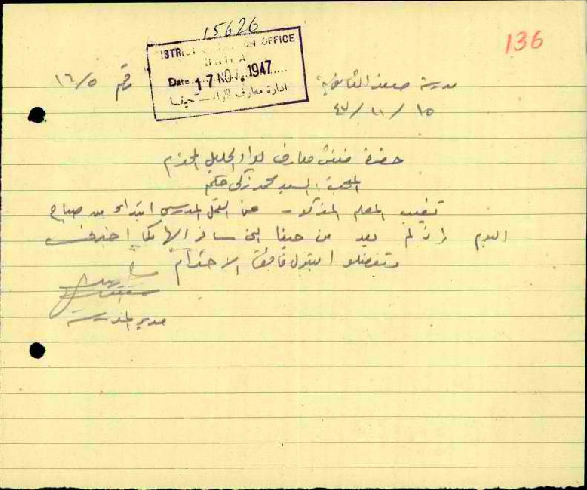 محمد زكي الحكيم عن المدرسة بسبب سفره إلى حيفا كما أخبر