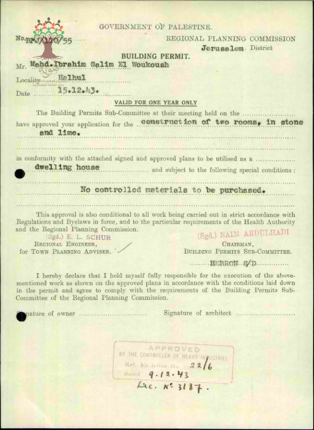طلب رخصة بناء - محمد ابراهيم سليم الوحوش - حلحول