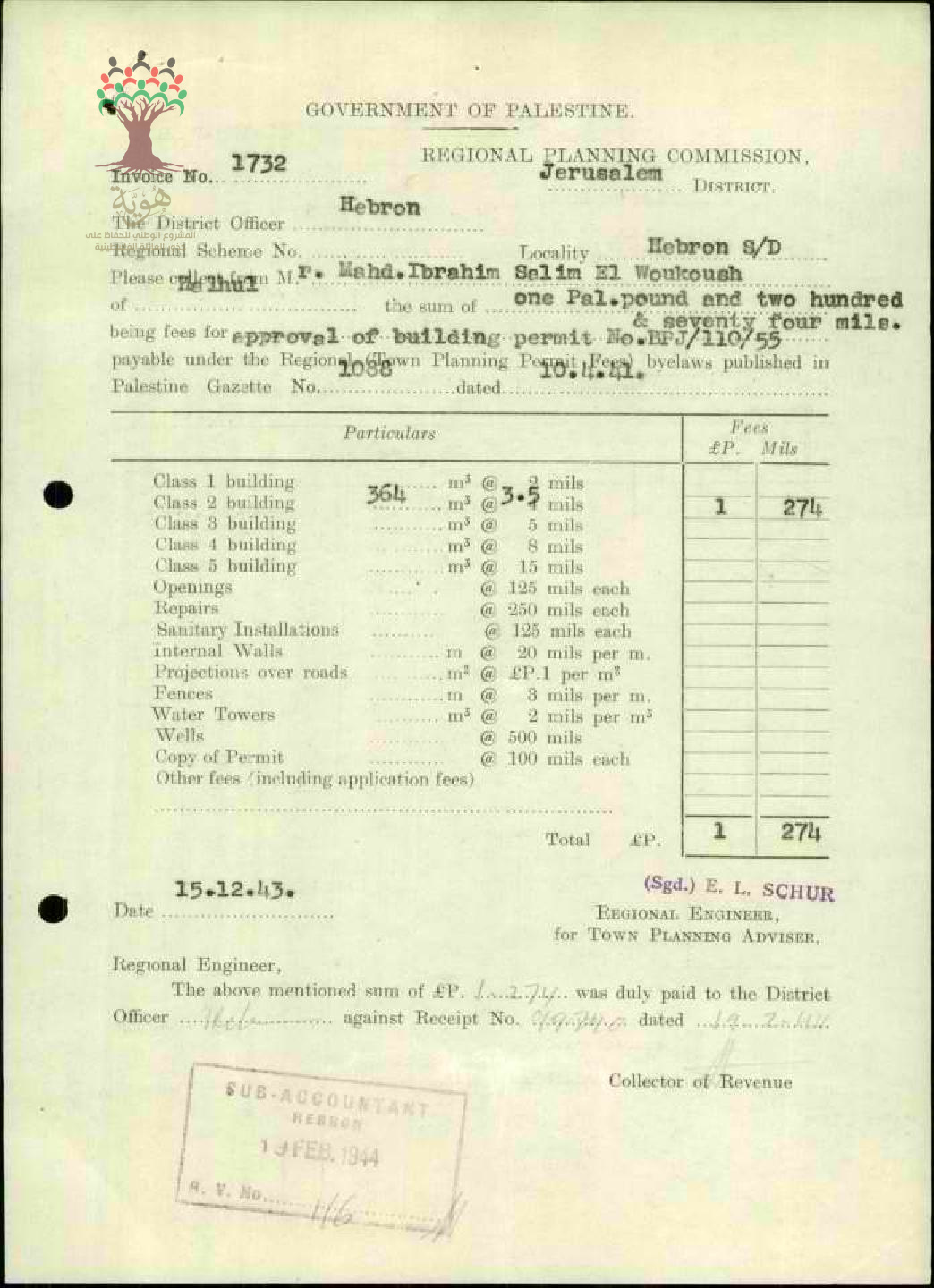 رسوم لطلب رخصة بناء غرفتين - محمد ابراهيم سلم الوحوش - حلحول
