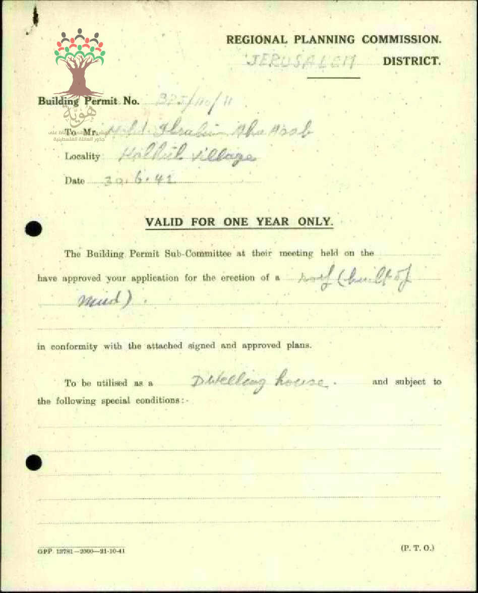 طلب رخصة بناء - محمد أبو عصب - حلحول