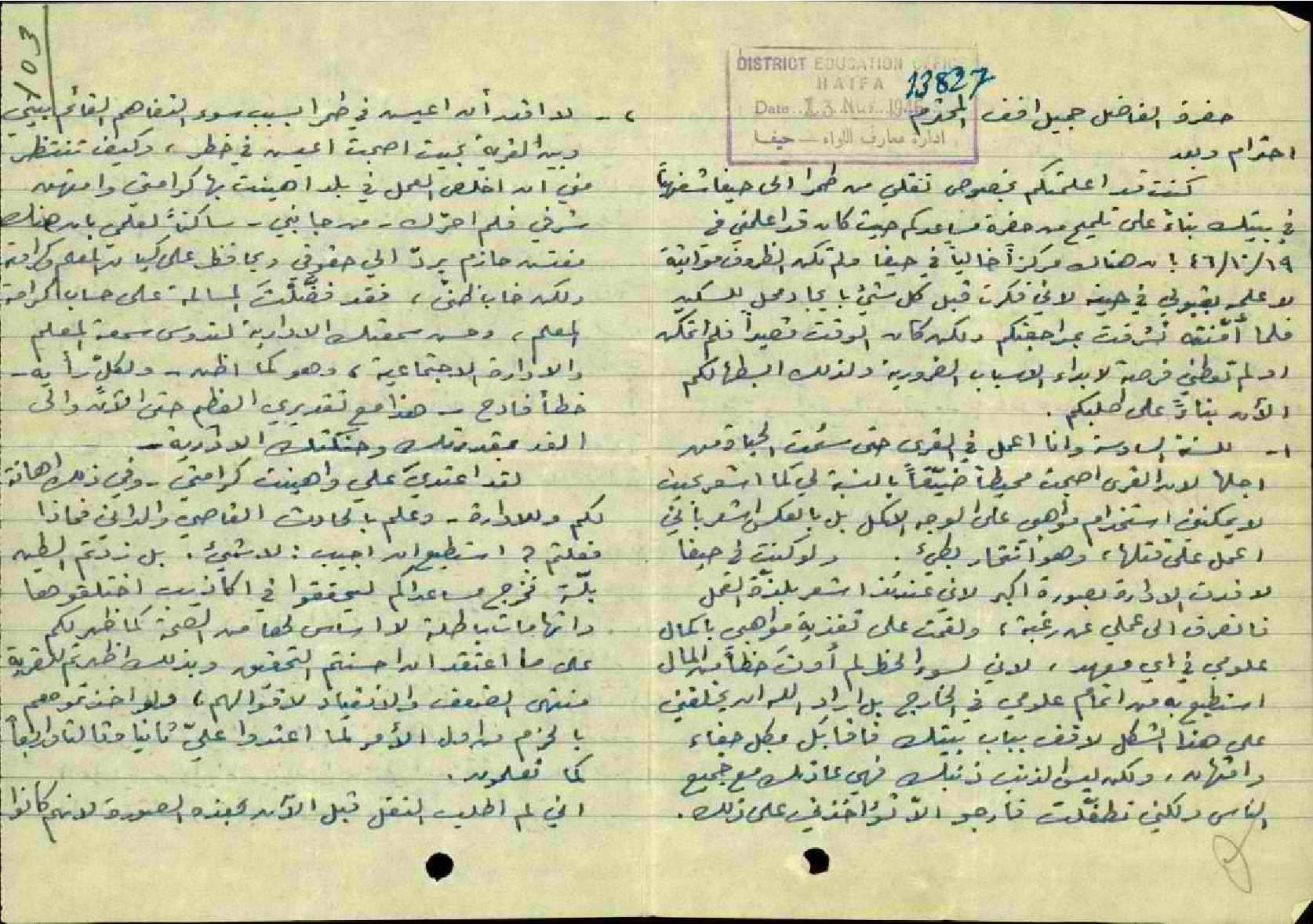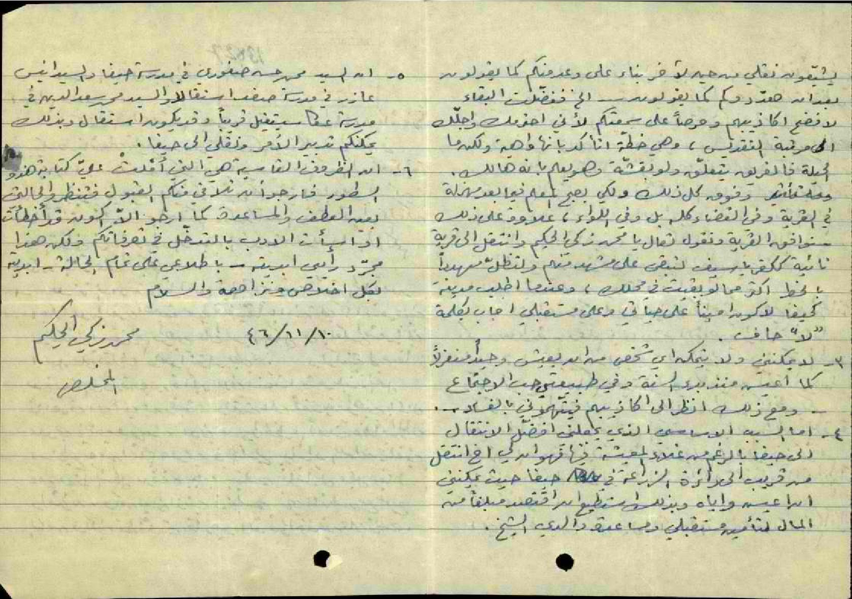 رسالة من المعلم محمد زكي الحكيم إلى السيد جميل أفندي عن عدم قدرته التدريس في القرى