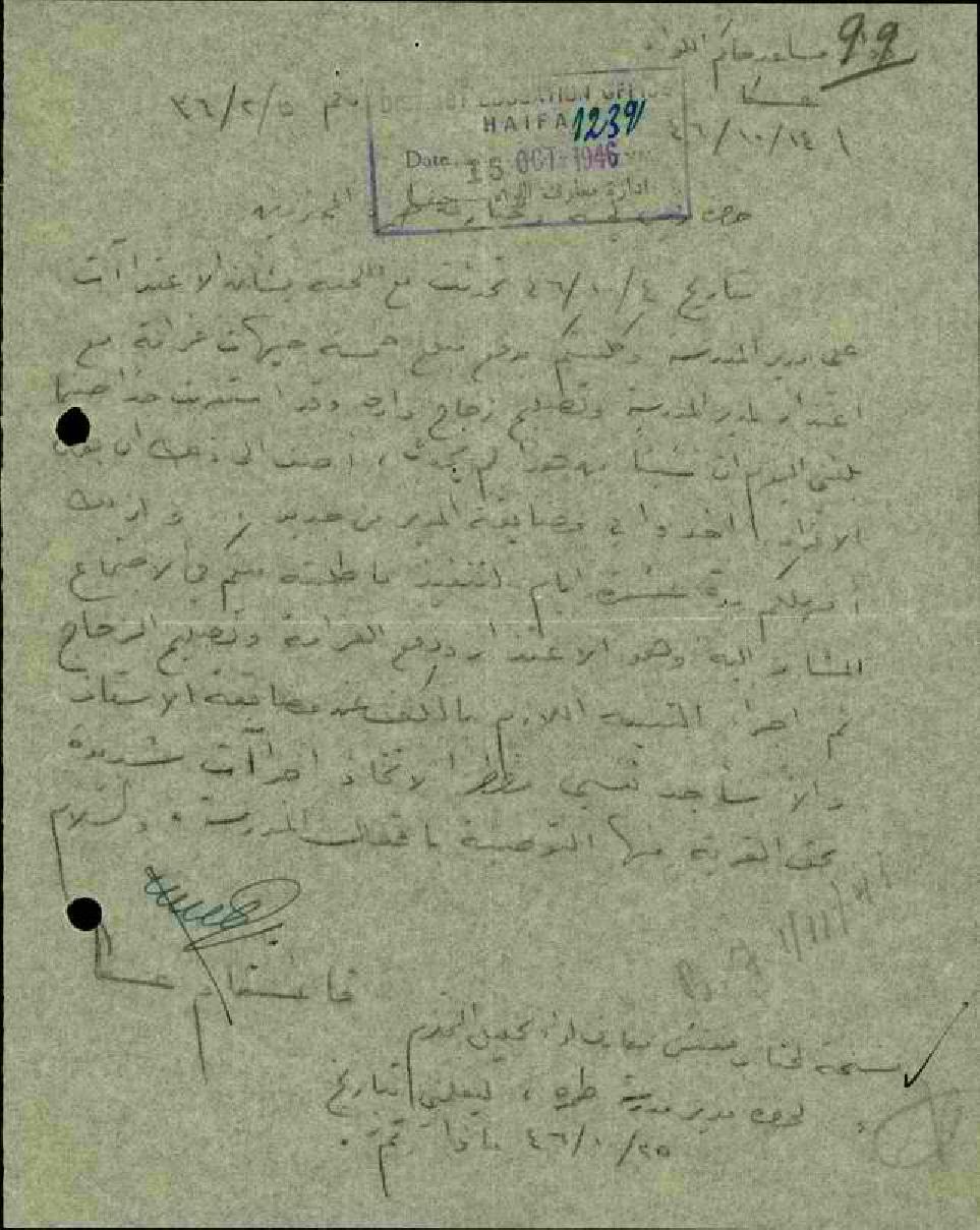 رسالة من قائم مقام عكا إلى مفتش معارف الجليل بخصوص الأعتداء على مدير المدرسة