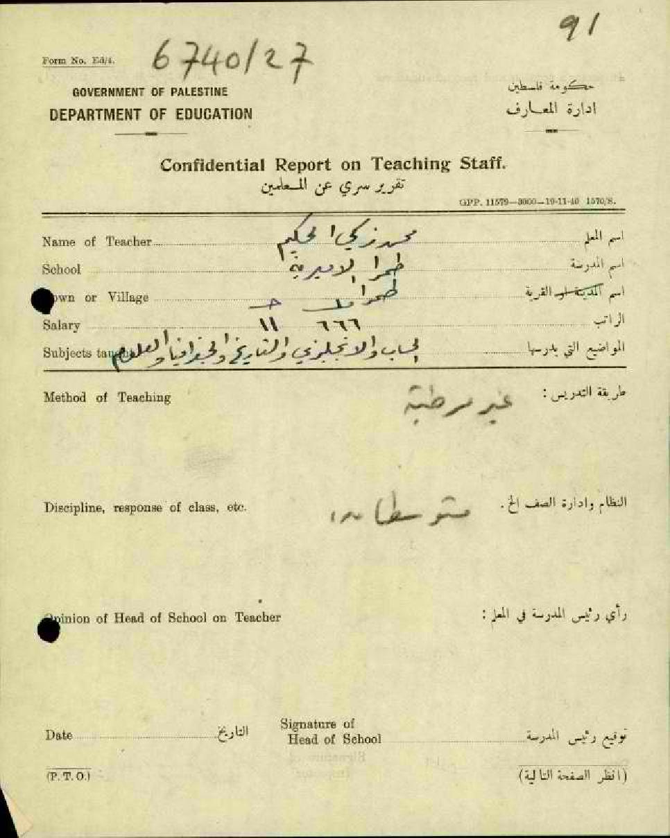 تقرير سري عن سلوك المعلم محمد زكي الحكيم