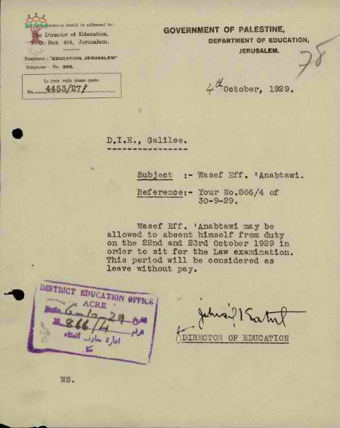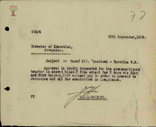مجموعة رسائل بخصوص تغيب المعلم واصف عنبتاوي لتقديم الامتحانات في مدرسة الحقوق