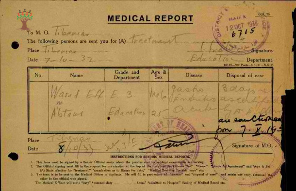 تقرير طبي عن غياب المعلم واصف عنبتاوي-مدرسة طبريا
