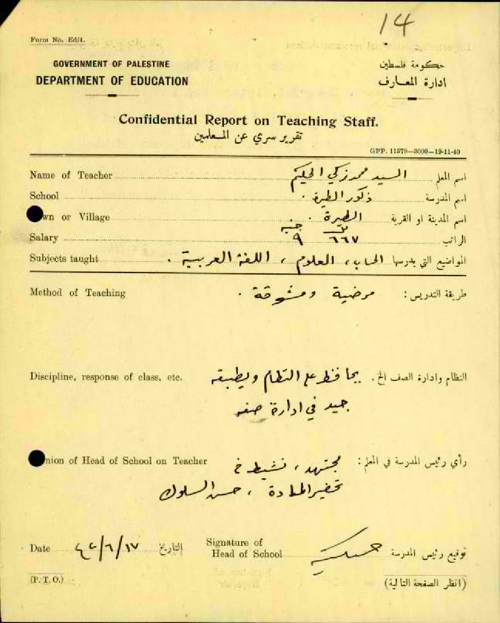 تقرير سري عن المعلمين - المعلم محمد زكي الحكيم طريقة تدريسه مرضية ومشوقة
