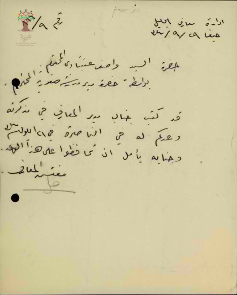 رسالة من مفتش المعارف الى المعلم واصف عنبتاوي يذكره بوعده الشفوي لمدير المعارف بتحسين اداءه