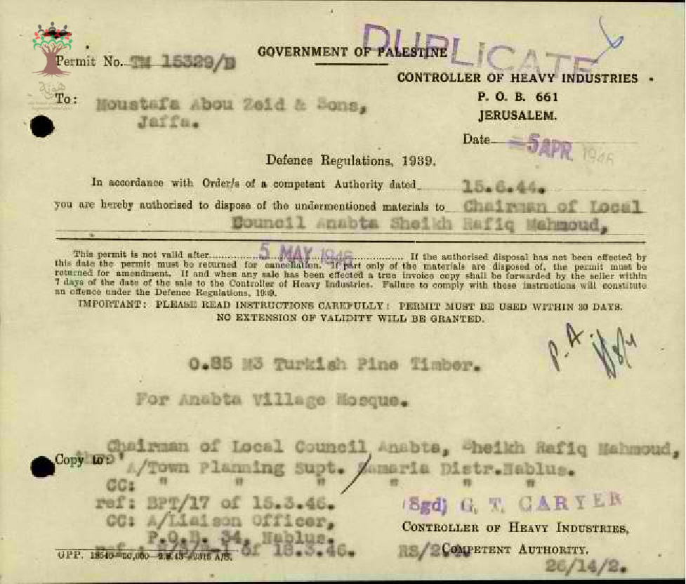 طلب رخصة بناء - الشيخ رفيق محمود - عنبتا