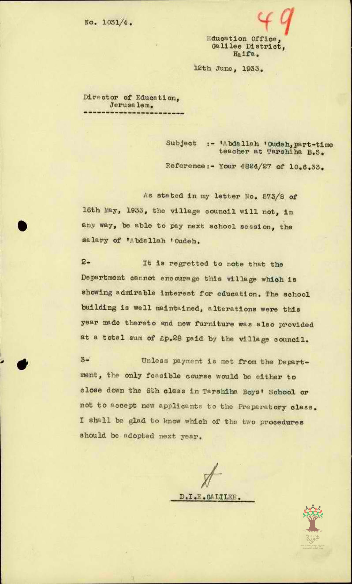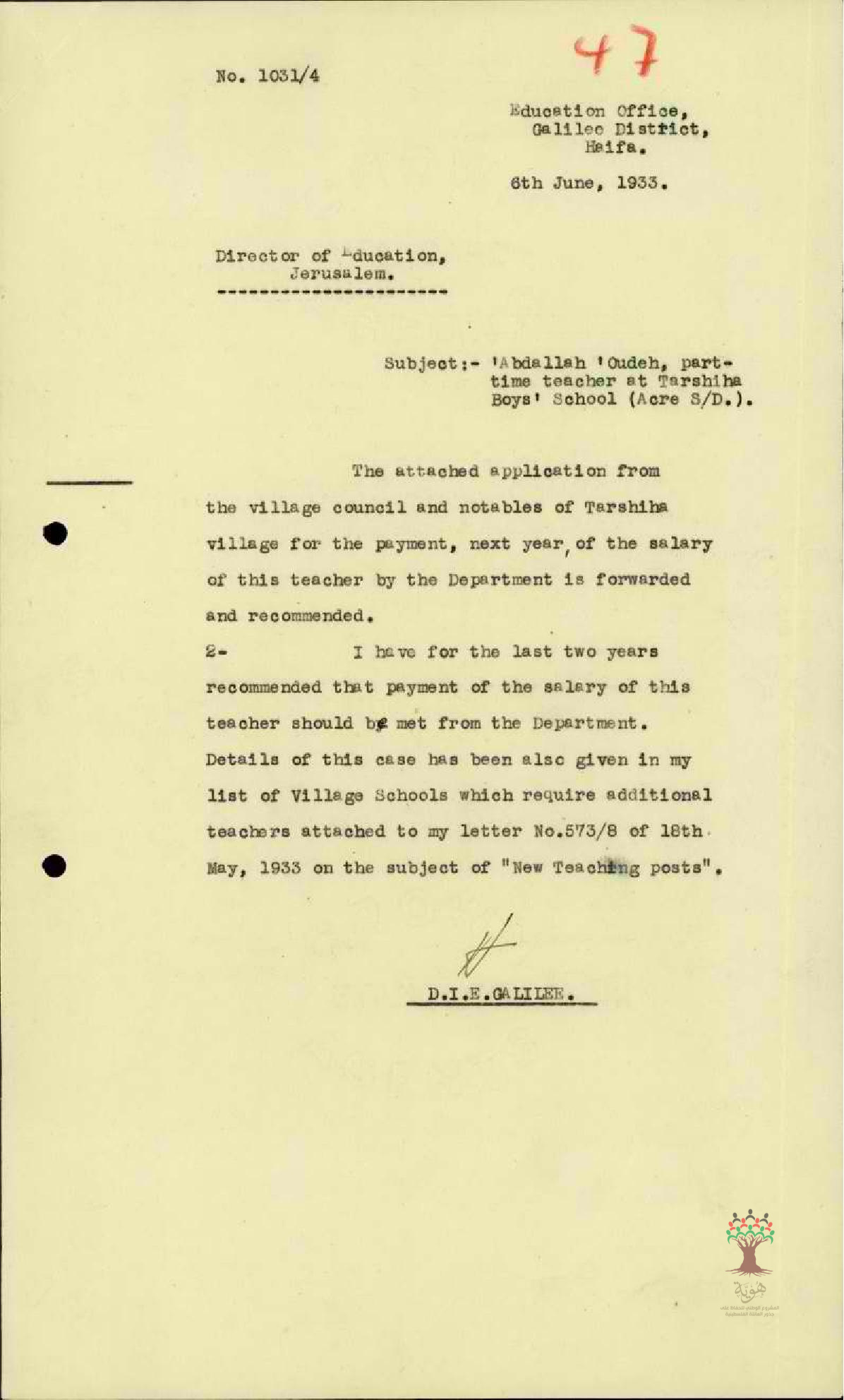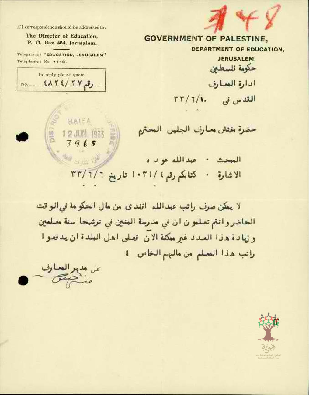 مجموعة رسائل بخصوص امكانية تعيين المعلم عبد الله عودة كمعلم على حساب الادارة وعدم وجود شاغر لتعيينه على حساب الحكومة