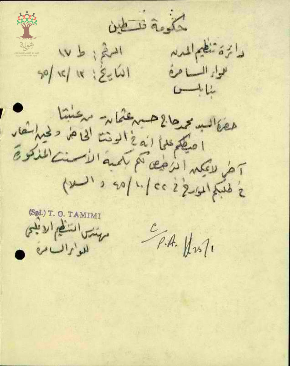 رسالة من مهندس التنظيم الاقليمي إلى السيد محمد حاج حسين عثمان يعلمه برفض طلب الترخيص بكمية الاسمنت المطلوبة