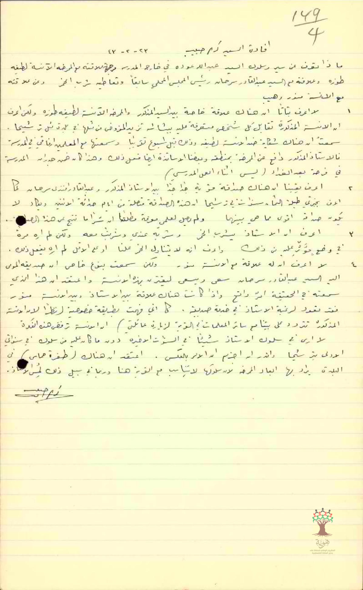 مجموعة افادات والتحقيق بخصوص سلوك المعلم عبد الله عودة