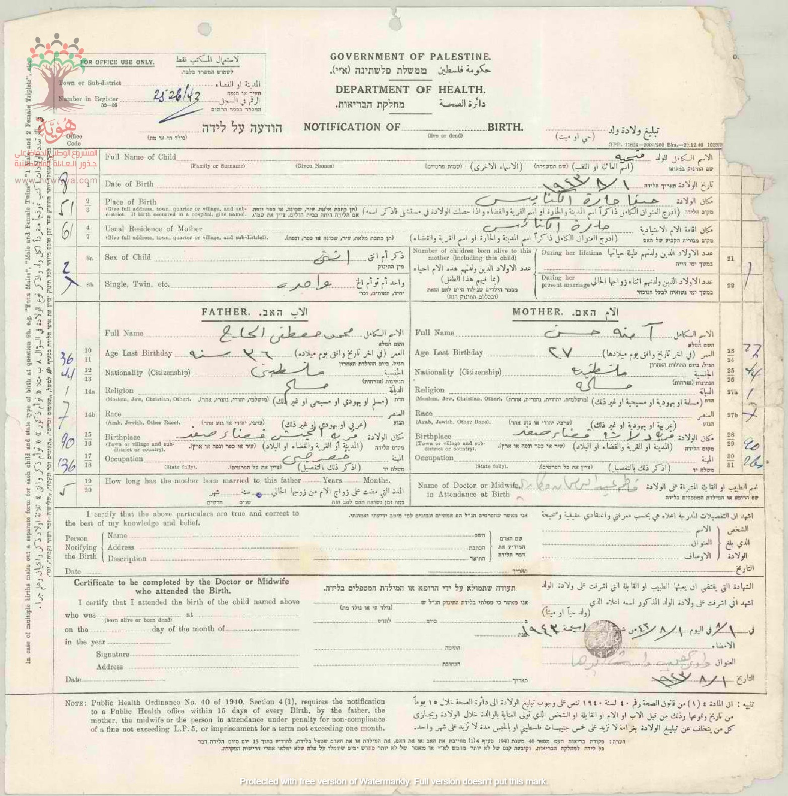 شهادة ميلاد فتحية محمد الحاج - الجش