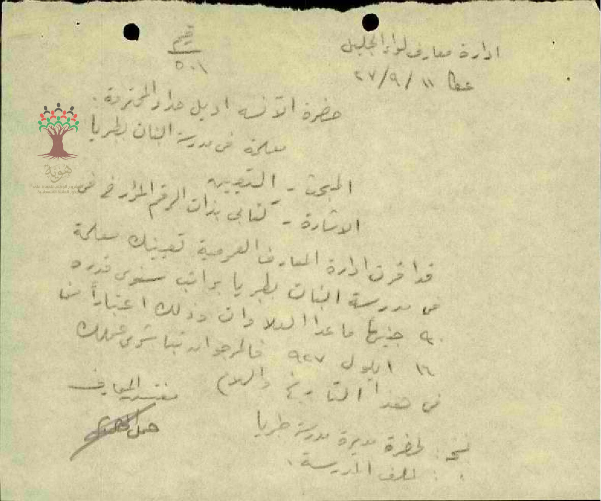 تعيين المعلمة أديل نصرالله حداد في مدرسة طبريا للبنات