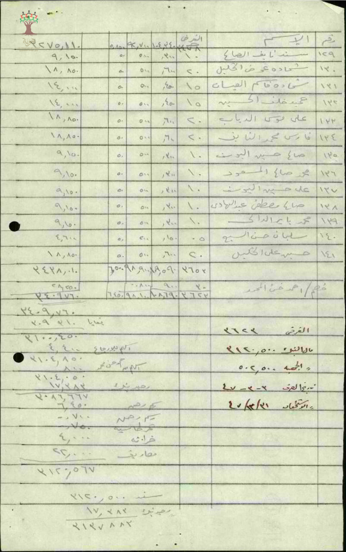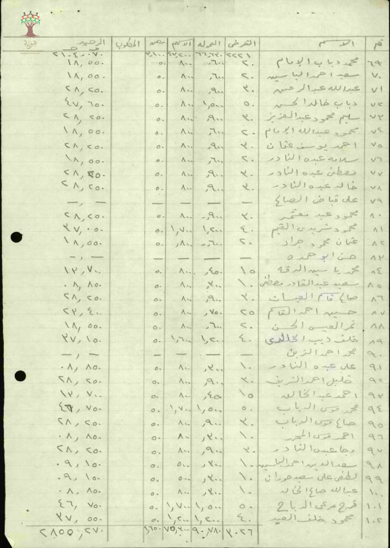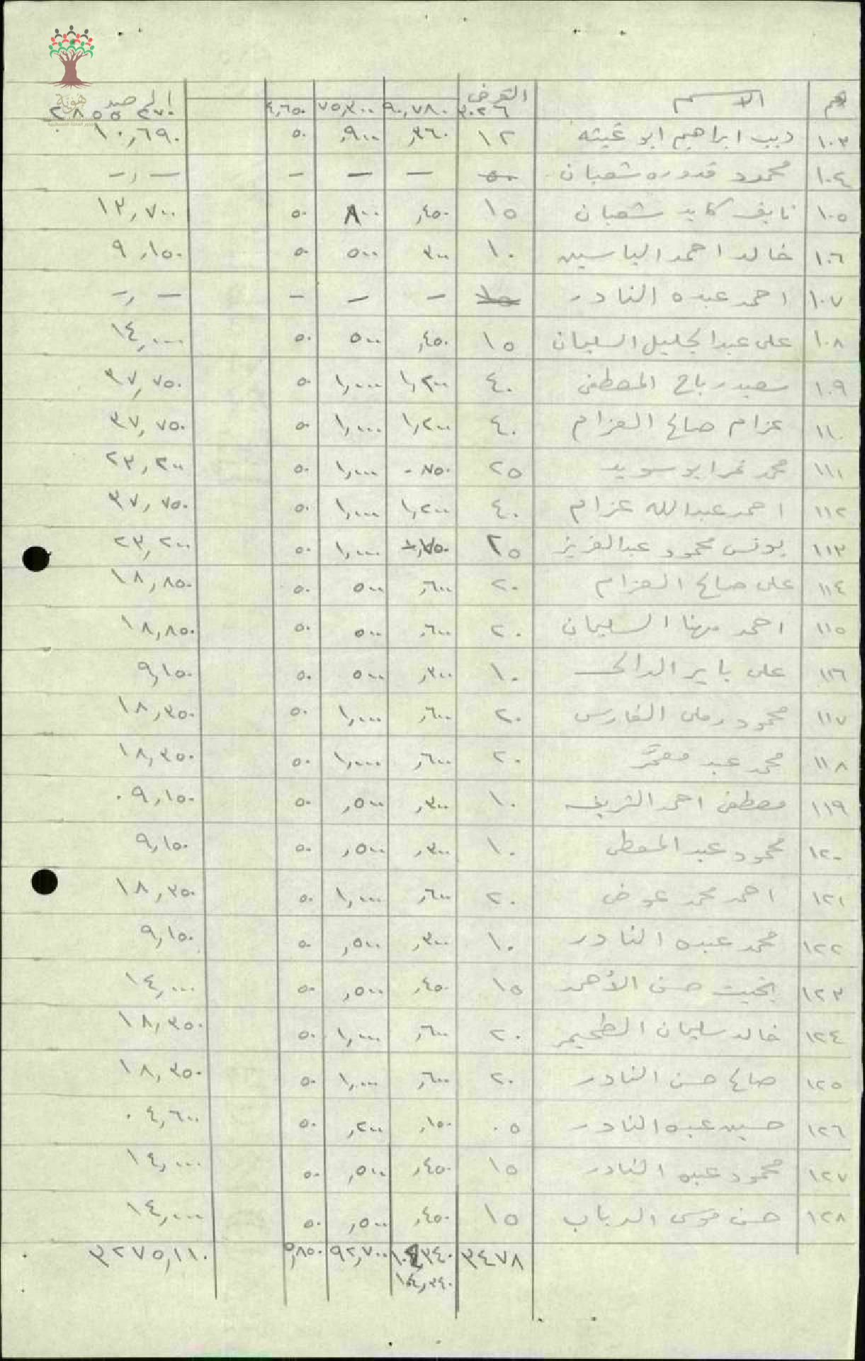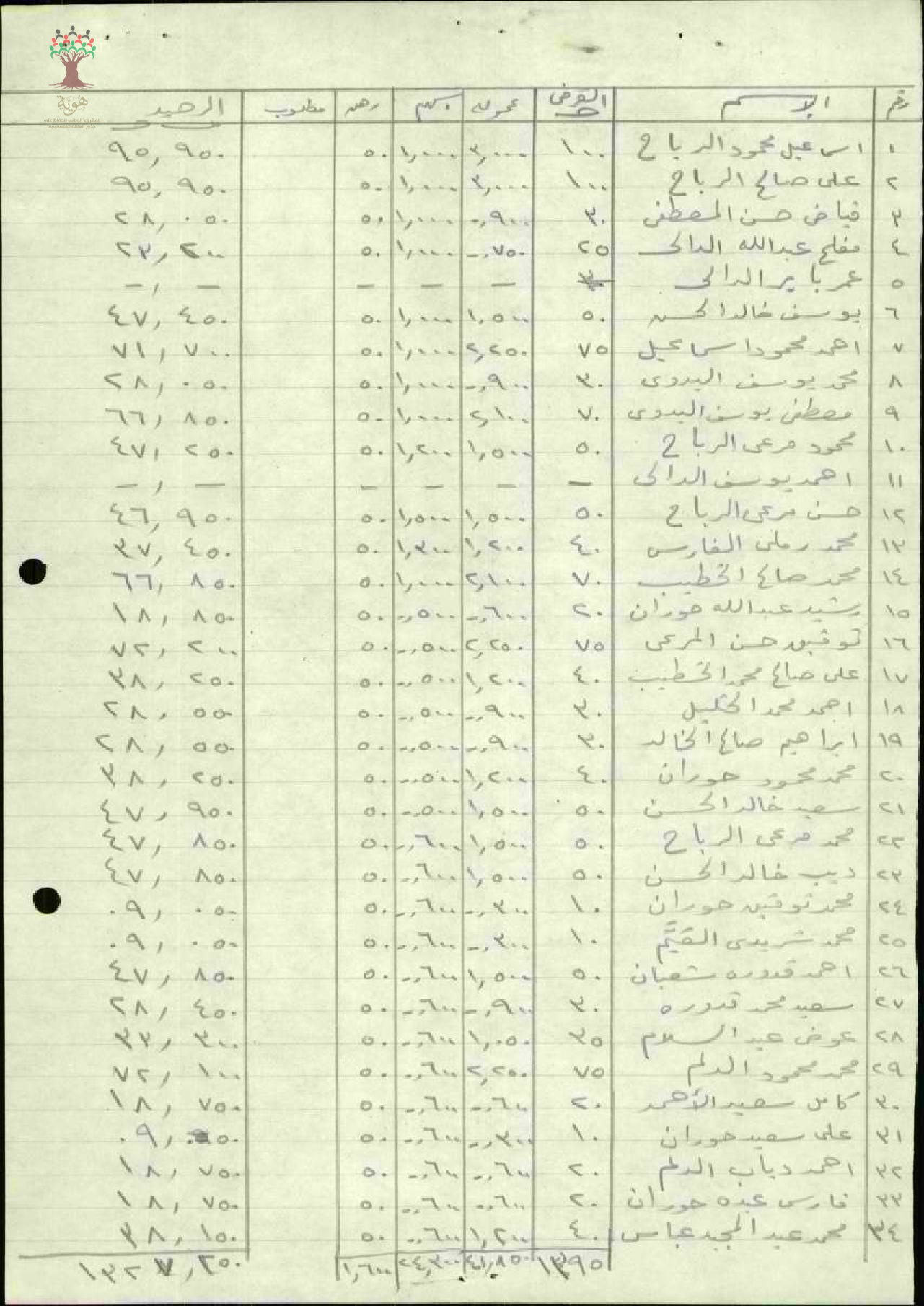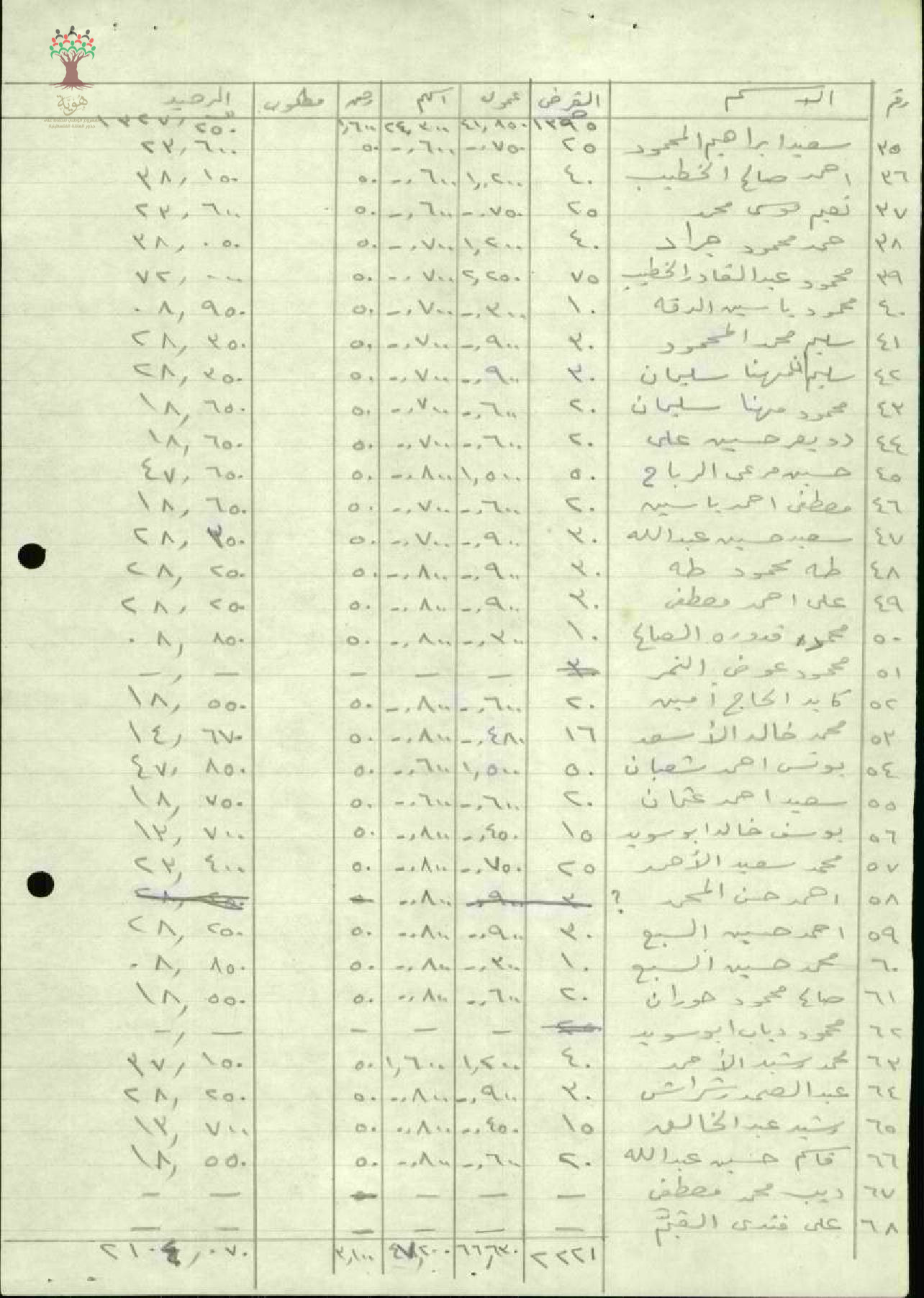 جداول تبين القرض والعمولة والأسهم والرهن لأعضاء جمعية حطين - 1947