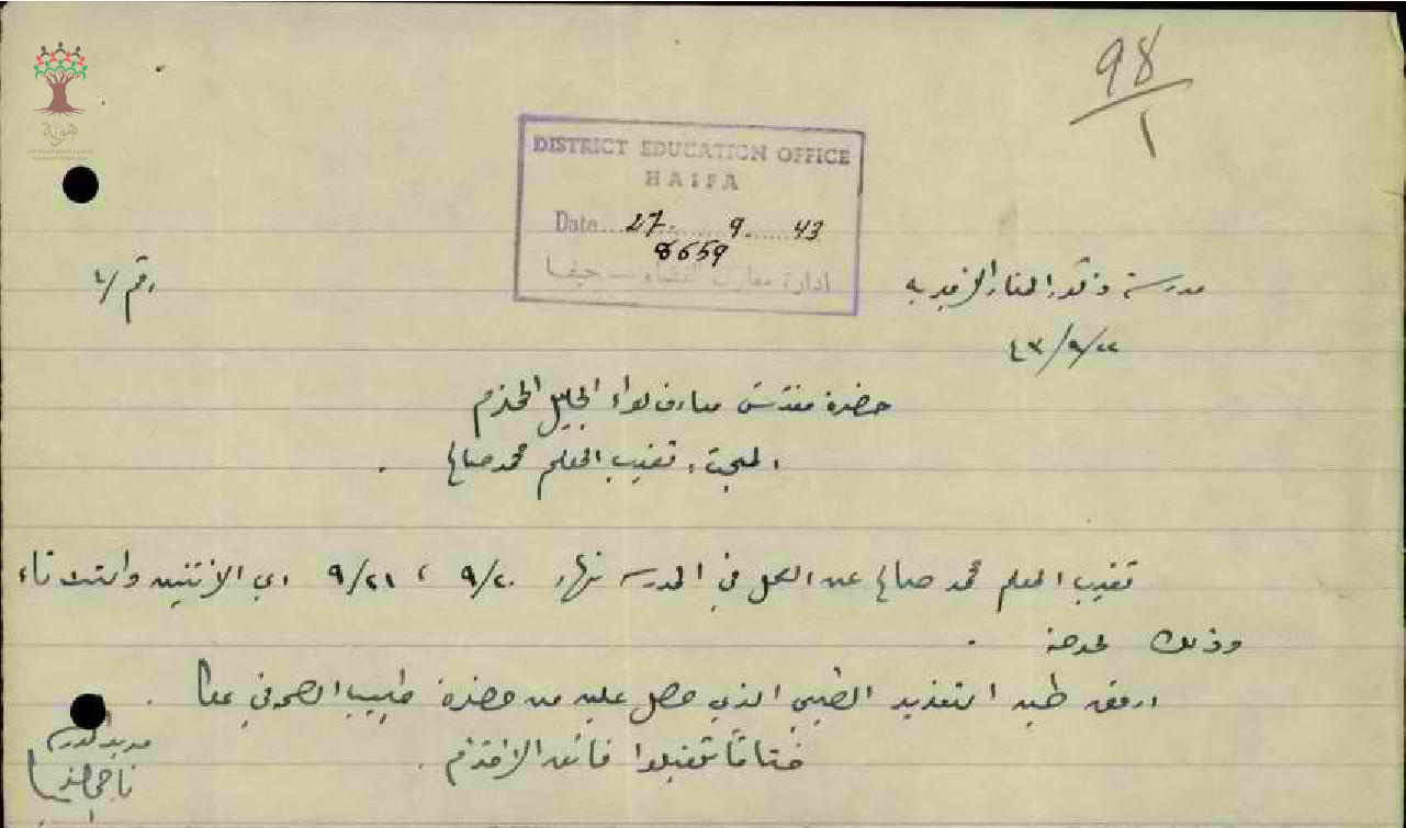رسالة من مدير مدرسة المغار الى مفتش المعارف بخصوص تغيب المعلم محمد قاسم مرفقة بالتقرير الطبي