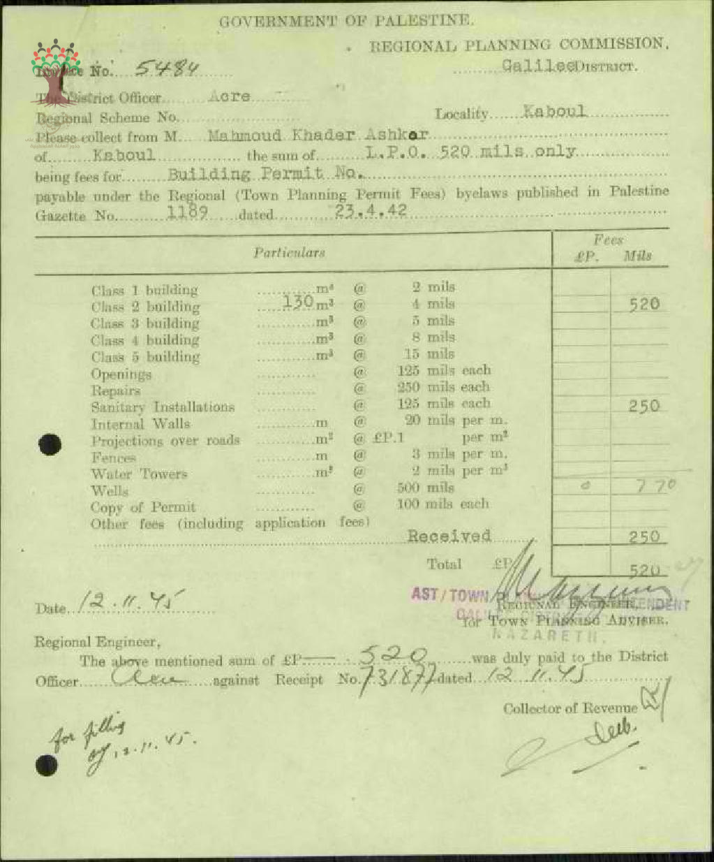 رسوم لطلب رخصة بناء مسكن - محمود خضر الأشقر - كابول