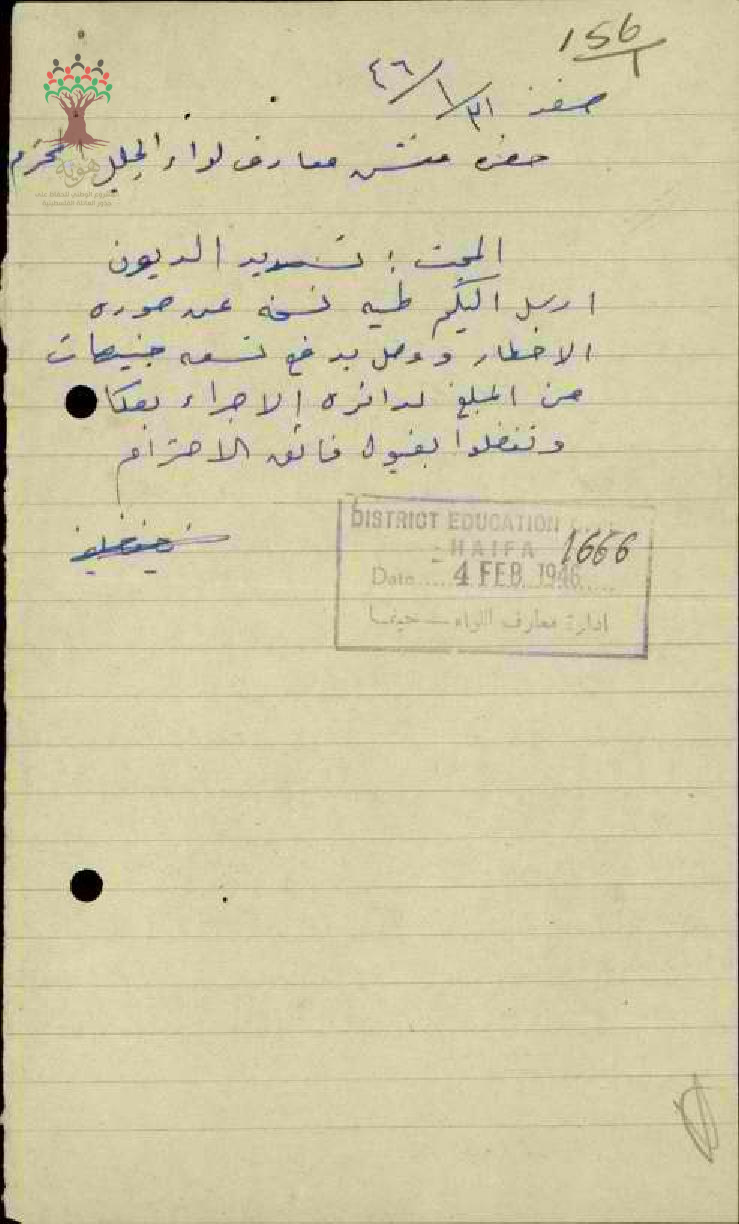 تسديد ديون مقدمة من المعلم نايف خليفة - صفد مدرسة علما الريحانية